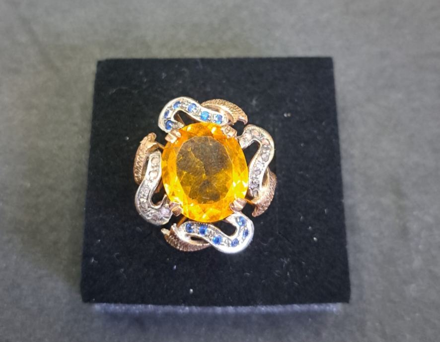 Prsten se sastoji od 1 glavnog kamena te 24 manja kamena okolo.