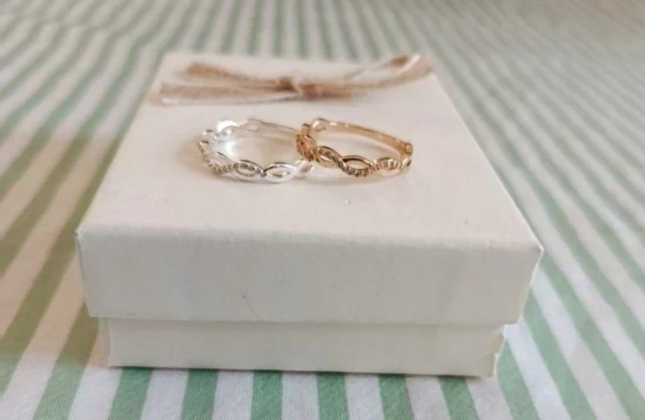 Dva potpuno nova prstena sa cirkonićima. Jedan je srebrne, a drugi zlatne boje.
