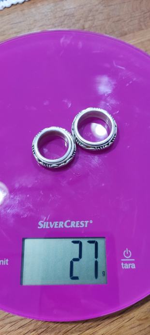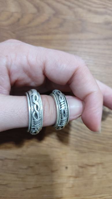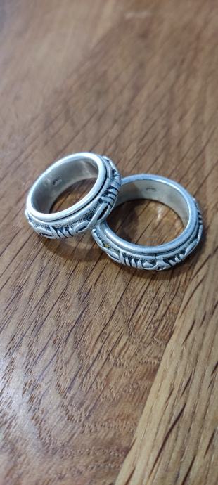 Dva masivna srebrna prstena s rotirajućim mehanizmom.