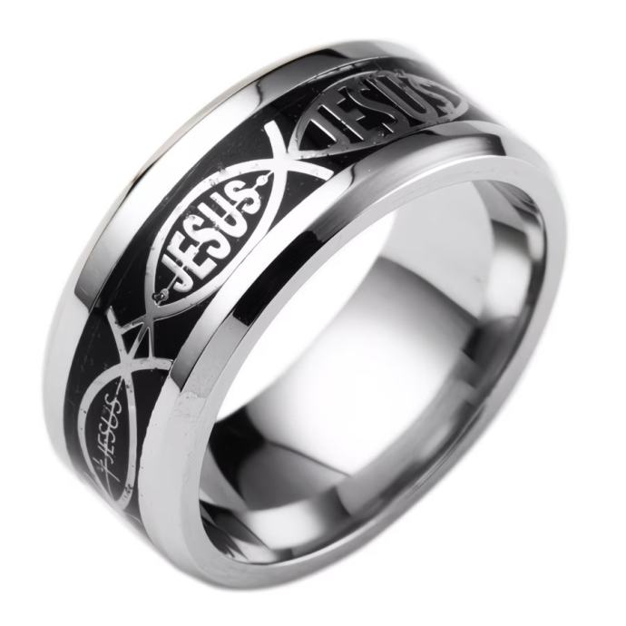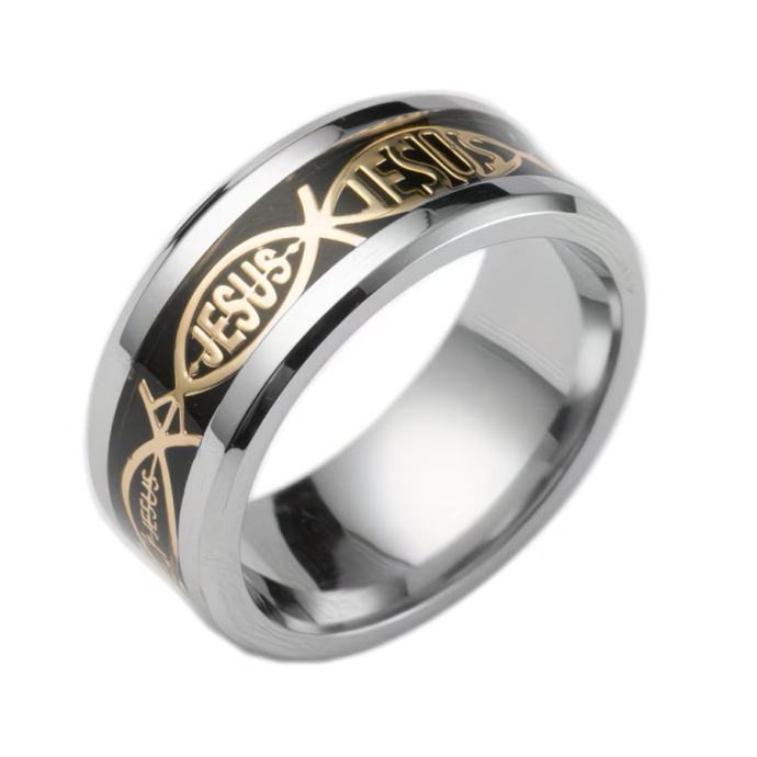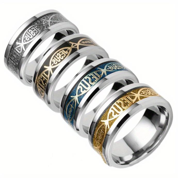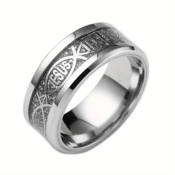 Kršćanski prsten od nehrđajućeg čelika 201 s natpisom Isus i križem s IHS simbolom - Izdržljiv, udoban kroj, uniseks vjerski vjenčani prsten za muškarce i žene, izdržljiv svakodnevni kršćanski nakit za crkvu, Uskrs, Božić (Isus, križ, natpis IHS, nehrđajući čelik 201, udoban kroj, uniseks, nošenje tijekom cijele godine, blagdanski poklon, biblijski križ, natpis Isus, miran kršćanski simbol)