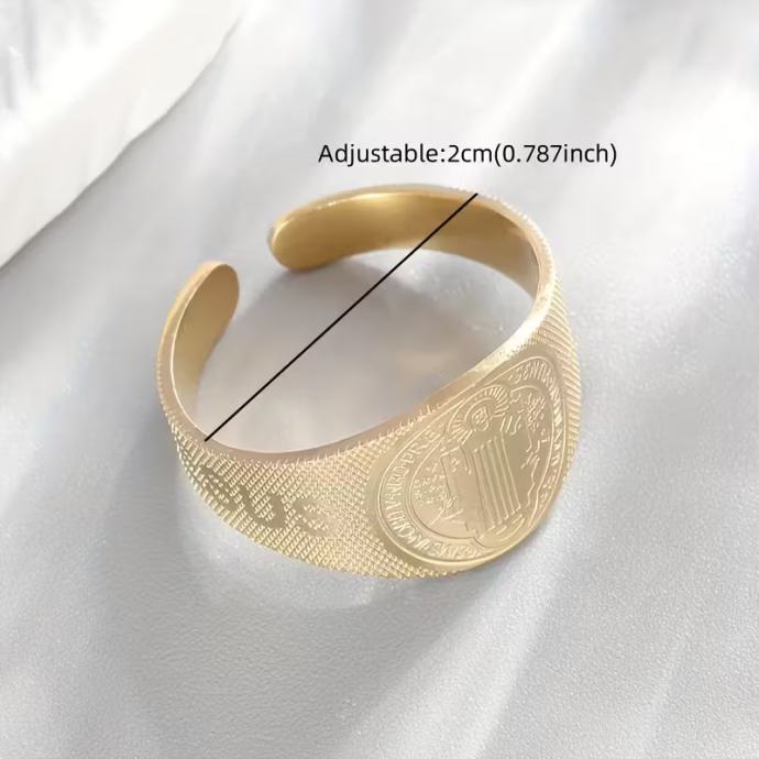 Muški kršćanski prsten s medaljom Isusa Krista od nehrđajućeg čelika - podesivi široki otvor, ugravirani portret Isusa i amblem IHS-a, izdržljiv vjerski poklon za muškarce, za svakodnevno nošenje i posebne prigode, katolički vjerski dodatak, luksuzan i moderan kršćanski
