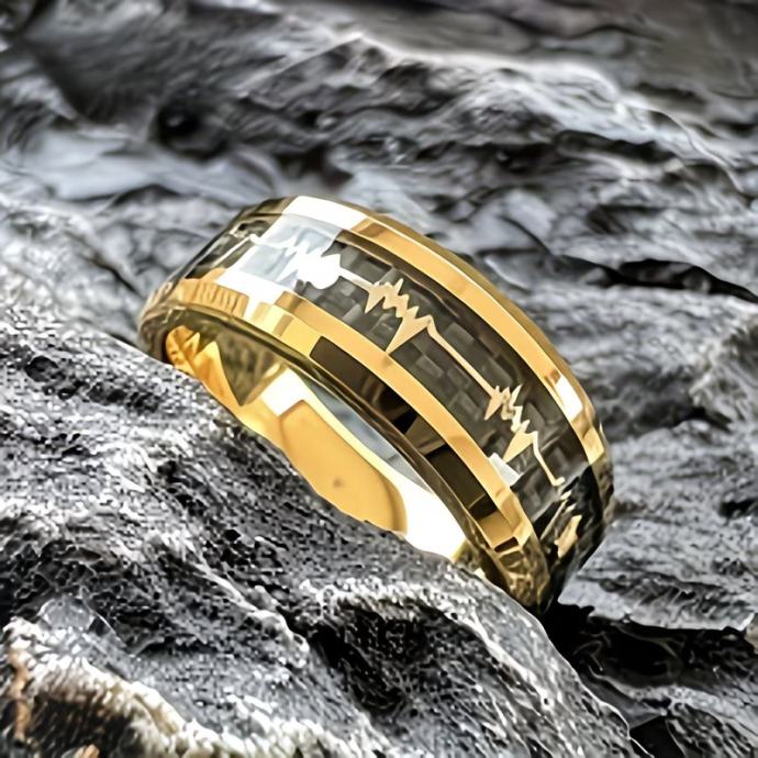 Europski i američki modni zlatni karbonski vlakna + zlatni otkucaj srca muški nakit prsten od nehrđajućeg čelika godišnjica Valentinovo poklon, najbolji poklon za vašeg partnera ili prijatelja.