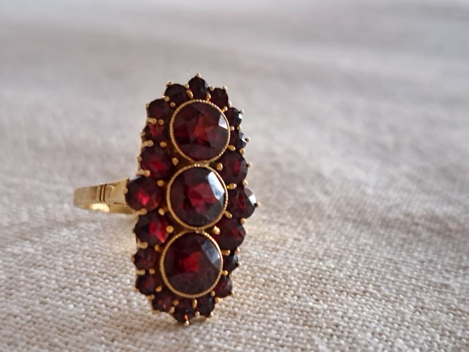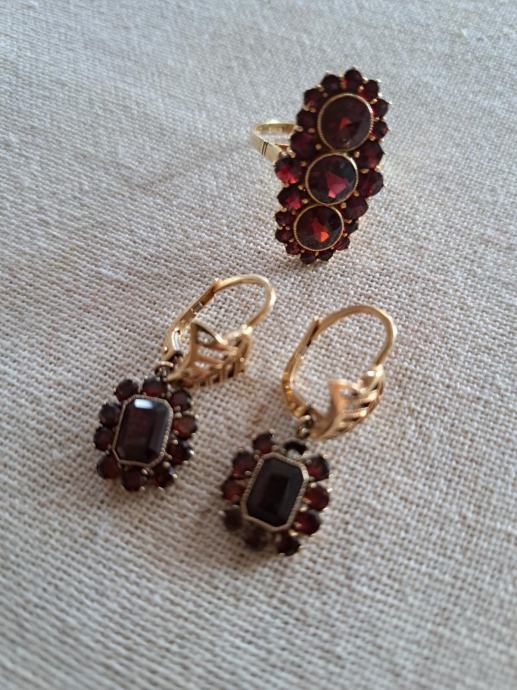 Luksuzni komplet od 14 karatnog zlata i granat kamena, prsten promjer 18 mm