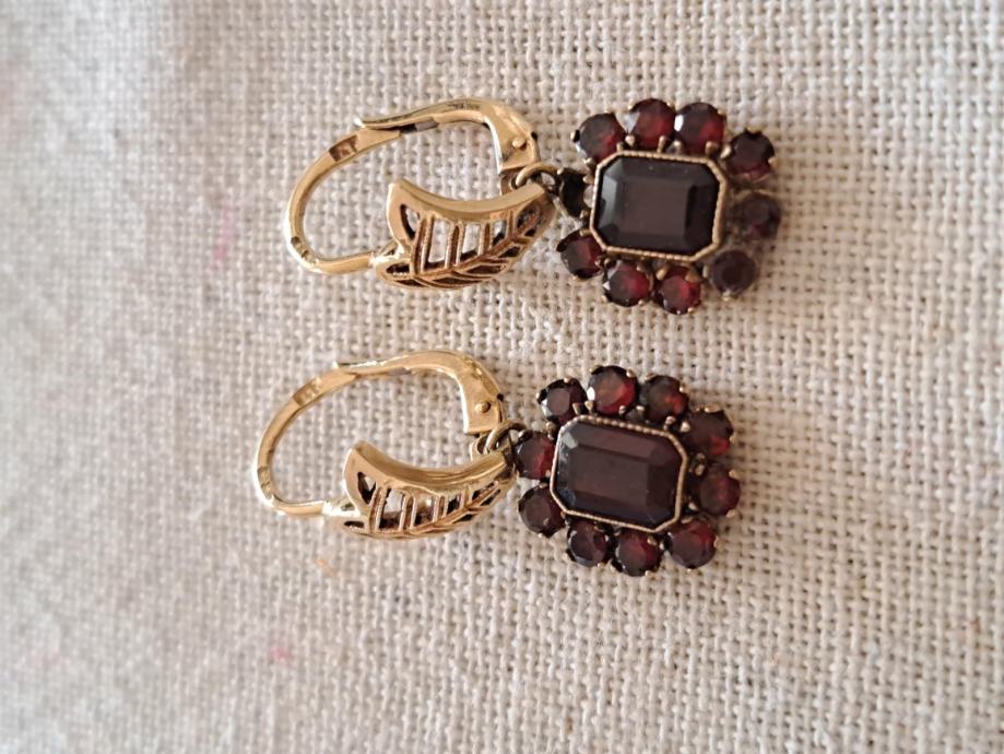 Nakit, prsten i naušnice u kompletu od 14 karatnog zlata i granata