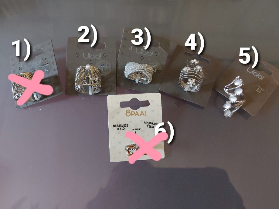 2) Prsten srebrne boje sa perlicom, unutarnji promjer 18 mm, širina prstena 1,6 cm - 20 kn