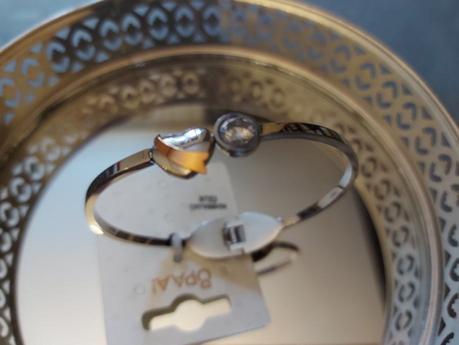 7) Narukvica srebrne boje sa cirkonom, nehrđajući čelik, promjer vodoravno 6.3 cm, promjer okomito 5.8 cm - 50kn