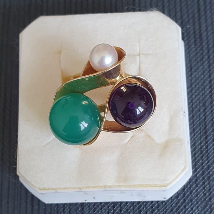 Prodajem moderan i poseban zlatni prsten za dame sa skupocijenim draguljima i biserima s ,,Certifikatom,, u prilogu.