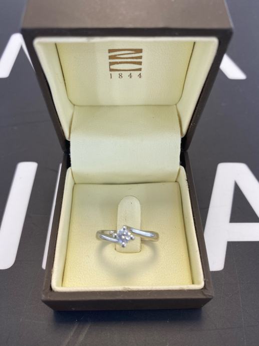 Zlatni prsten veličine 9/49, ukrašen 1 briljantom cca: 0,13 ct.