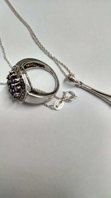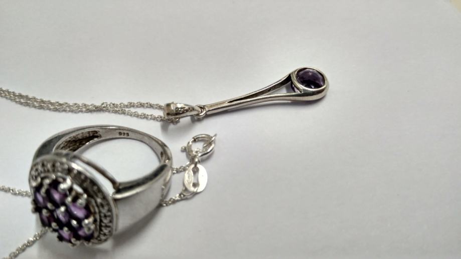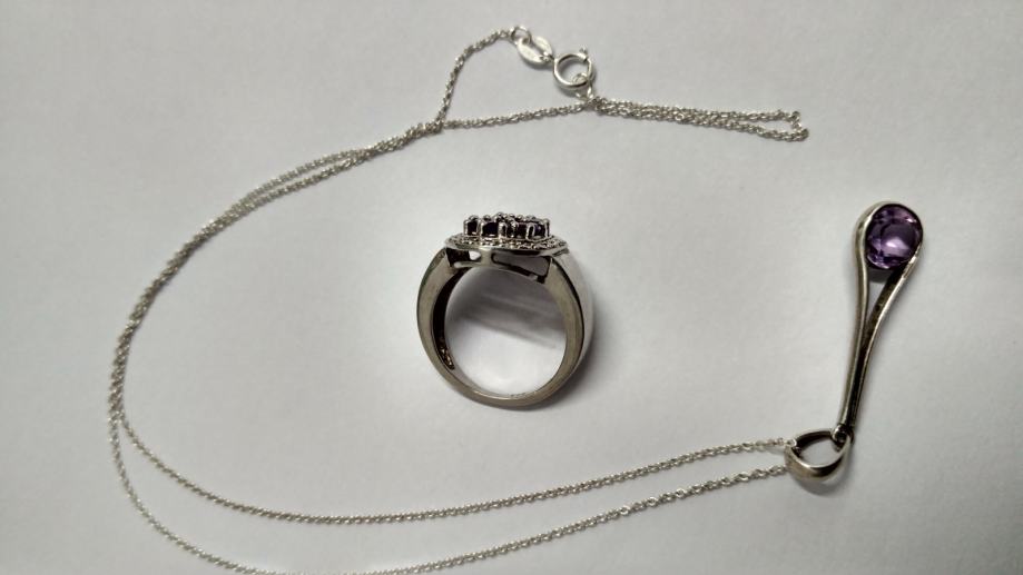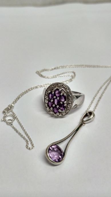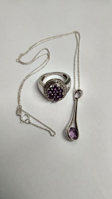PRSTEN SA AMETISTOM + OGRLICA SA PRIVJESKOM AMETIST, SREBRO 925