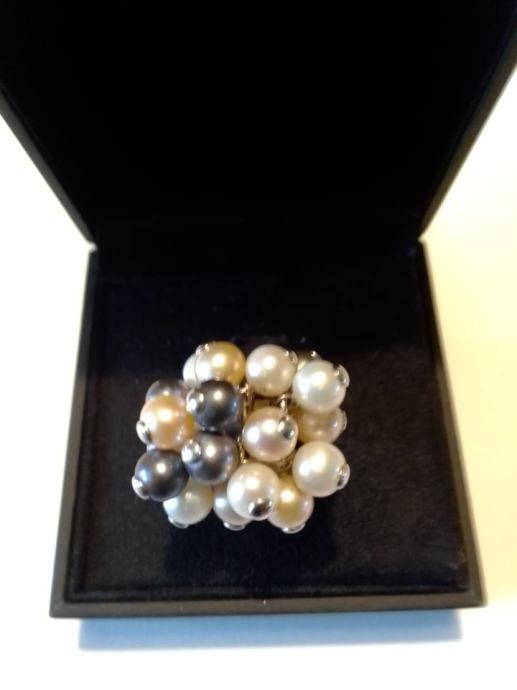 Prodajem prsten od bijelog zlata 18 kt sa prirodnim biserima /20kom raznih boja/ sa certifikatom.