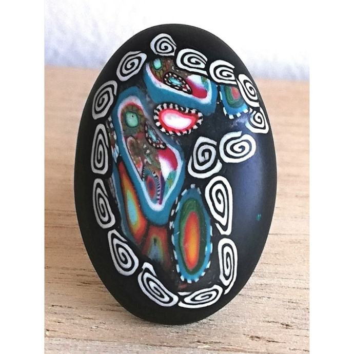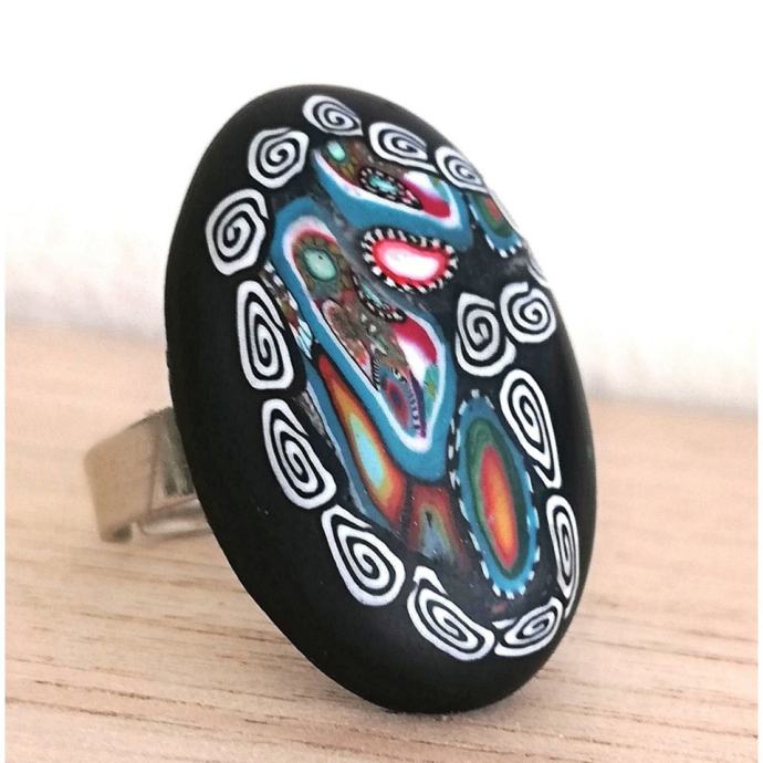 Ručno rađen prsten od fimo mase tehnikom milefiory. Podesiva veličina. Unikat.