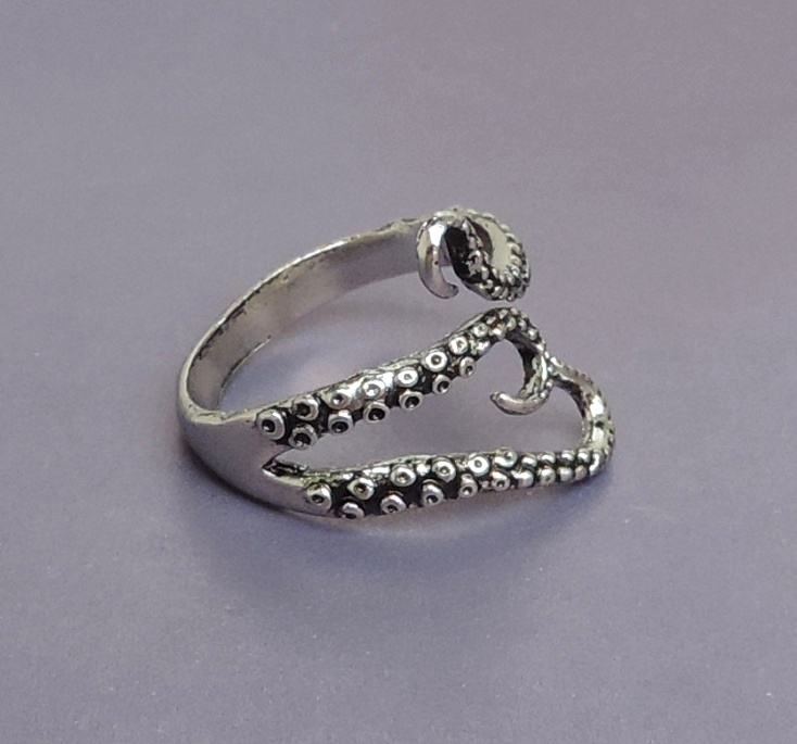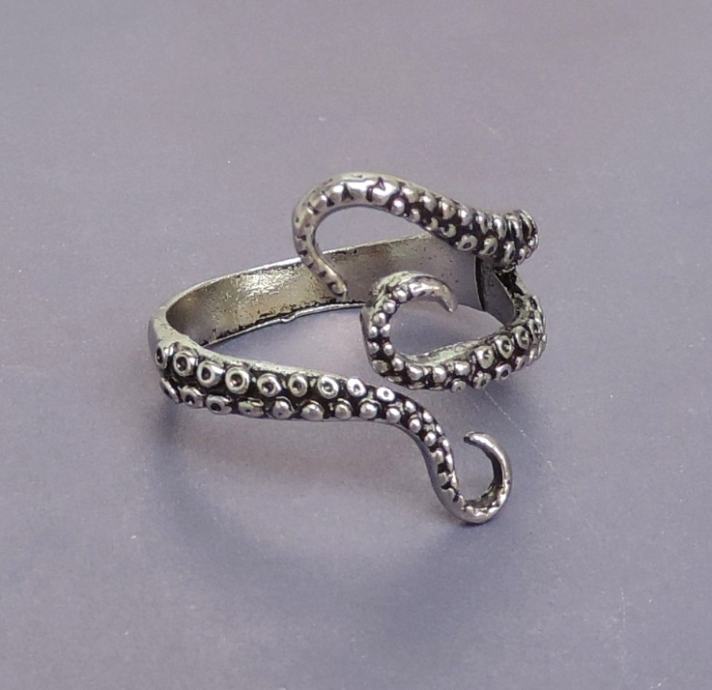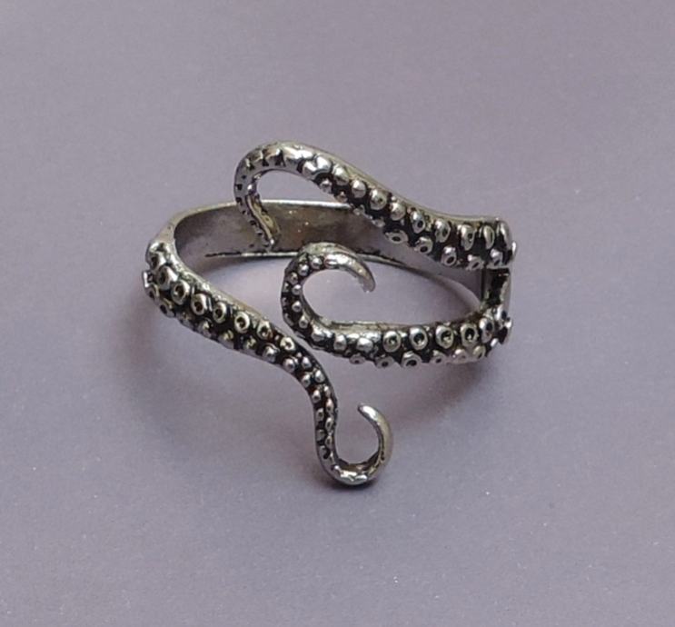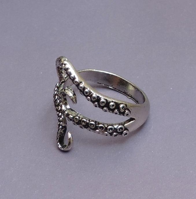 Originalan i vrlo efektan prsten u srebrnoj boji s krakovima hobotnice.