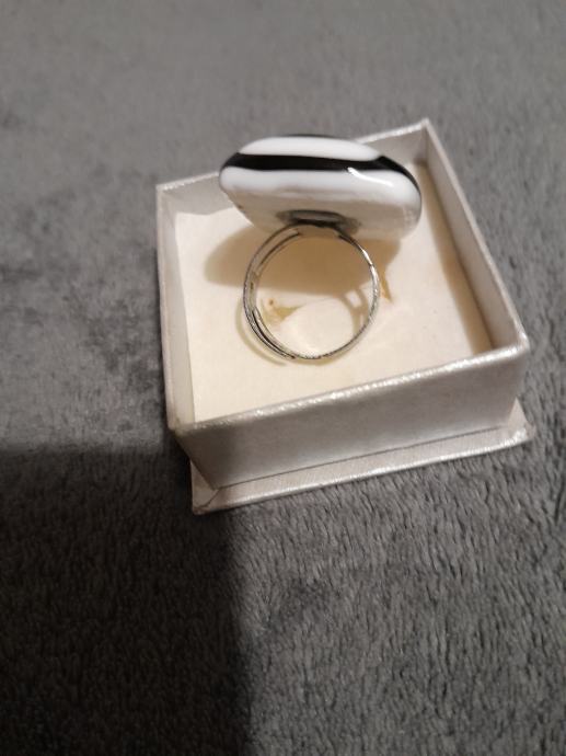 Ženski prsten s crno - bijelim kamenom , veličina se može podesiti.