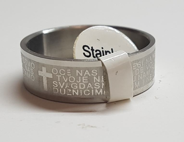 PRSTEN SA ISPISANOM MOLITVOM OČE NAŠ, NE HRĐAJUĆI ČELIK, 22 mm. NOVO