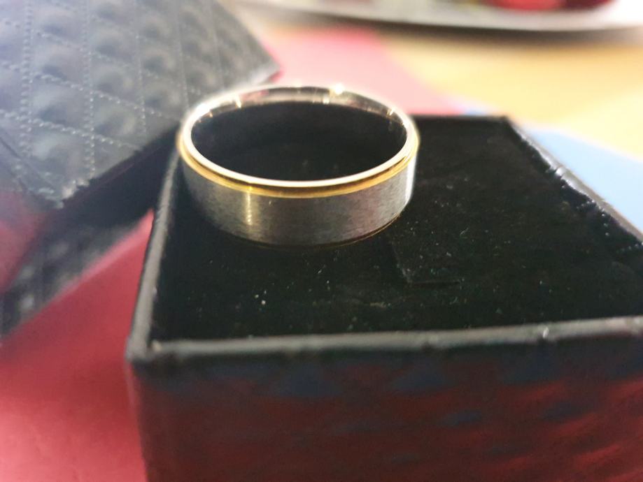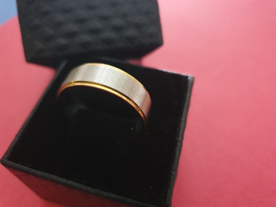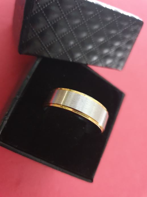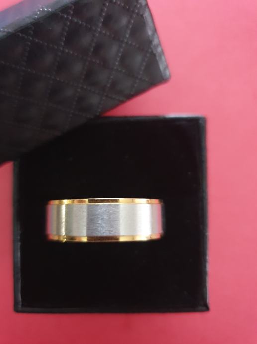Prsten kirurški čelik sa 18 K pozlatom na rubovima prstena, potpuno novo