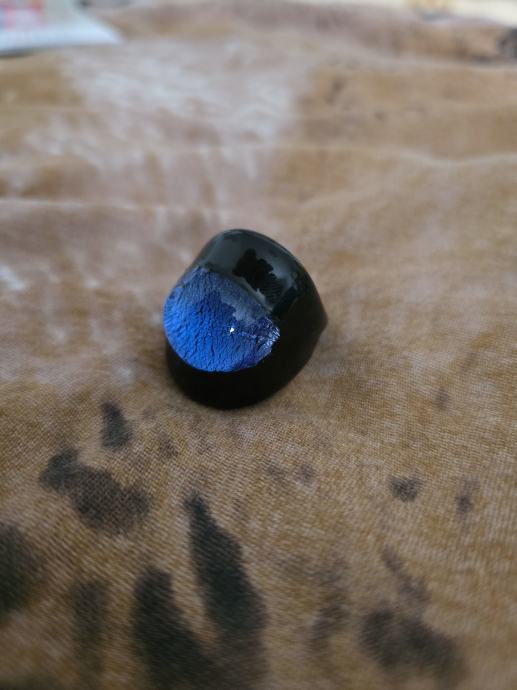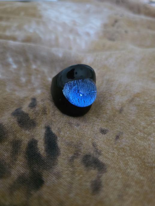 Osim od stakla, ovaj je prsten napravljen i od dvaju pigmenata (crna & plava boja) i srebra kao plemenitog metala. Tijekom okretanja prstena na svjetlosti dolazi do prelijevanja, tj. promjene srebrne boje (pravog srebra) u razne nijanse plave boje, pa ponovno u srebrnu i tako u krug. Na prstenu se nalazi i žig "Murano Glass" koji je dokaz autentičnosti. Osim toga, uz prsten dolazi i certifikat koji najbolje dokazuje posebnost i autentičnost ovog prekrasnog prstena. Pogledajte fotografije i uvjerite se sami!