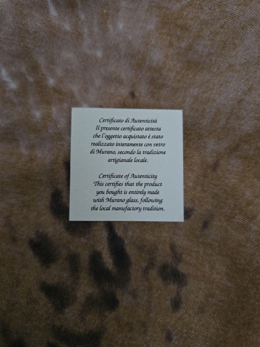 Prodaje se prekrasan, potpuno nov i nenošen prsten sa slika napravljen od znamenitog Murano-stakla, sa stoljetnom europskom venecijanskom tradicijom, dugo čuvanom tajnom njegove izrade. Murano je jedan od većih otoka Venecijanskog arhipelaga i najpoznatiji je upravo po izuzetno kvalitetnom staklu koje se ručno izrađuje stoljećima. Najbolji dokaz tome koliko je zapravo ovo staklo cijenjeno i prepoznato u svijetu jest to da su staklari u vrijeme Mletačke Republike uživali status plemića, ali sve pod jednim uvjetom: da nikada ne napuste otok Murano kako se tajna izrade famoznog stakla ne bi slučajno proširila van granica Venecije jer je upravo tom proizvodnjom stakla Mletačka Republika imala monopol nad proizvodnjom stakla u Europi te je taj sektor proizvodnje bio jedan od onih ključnih koji su omogućili sjaj i krasote Venecije kakvom ju danas svi poznajemo.