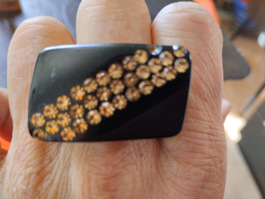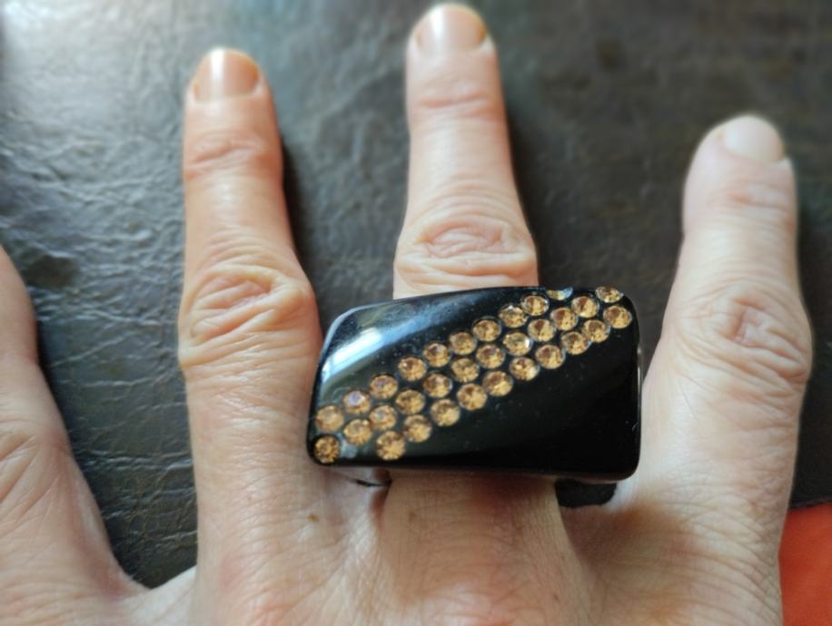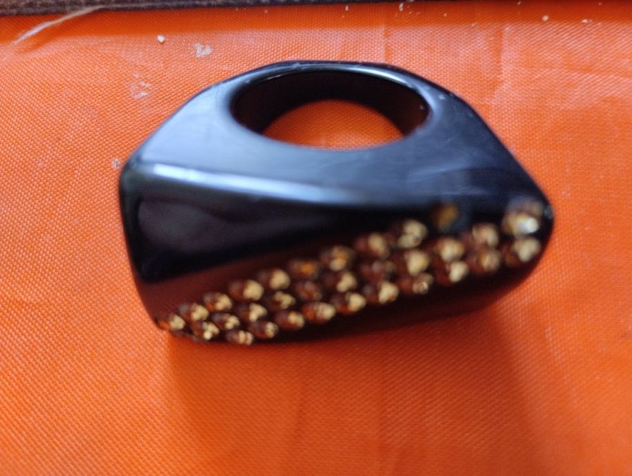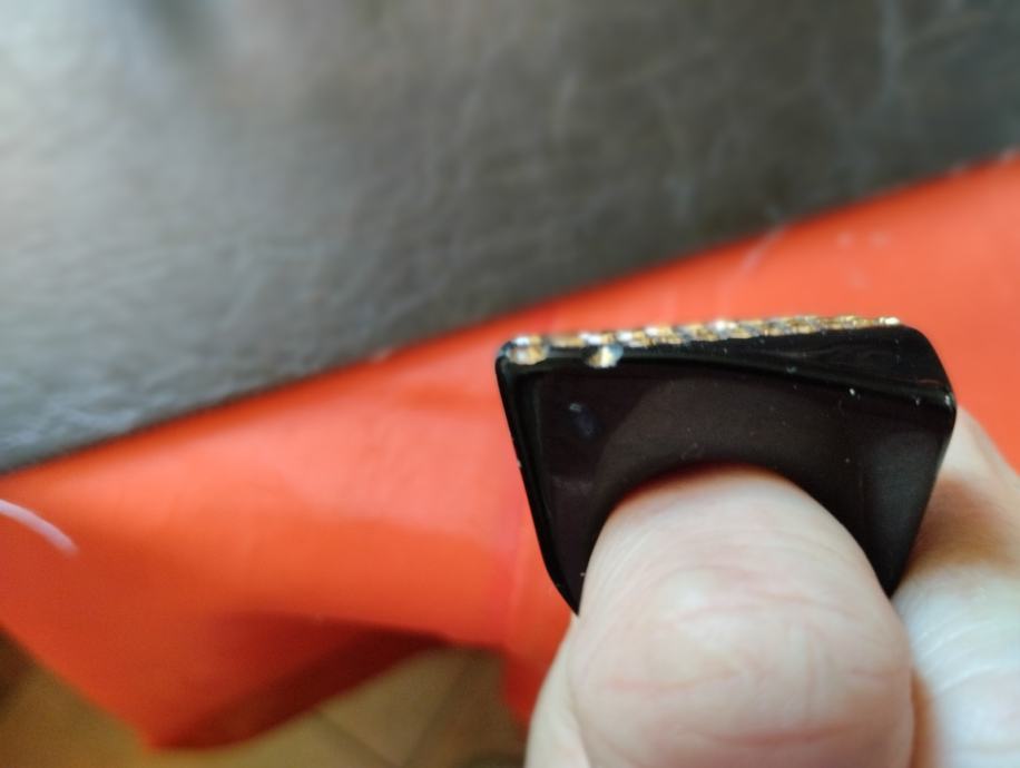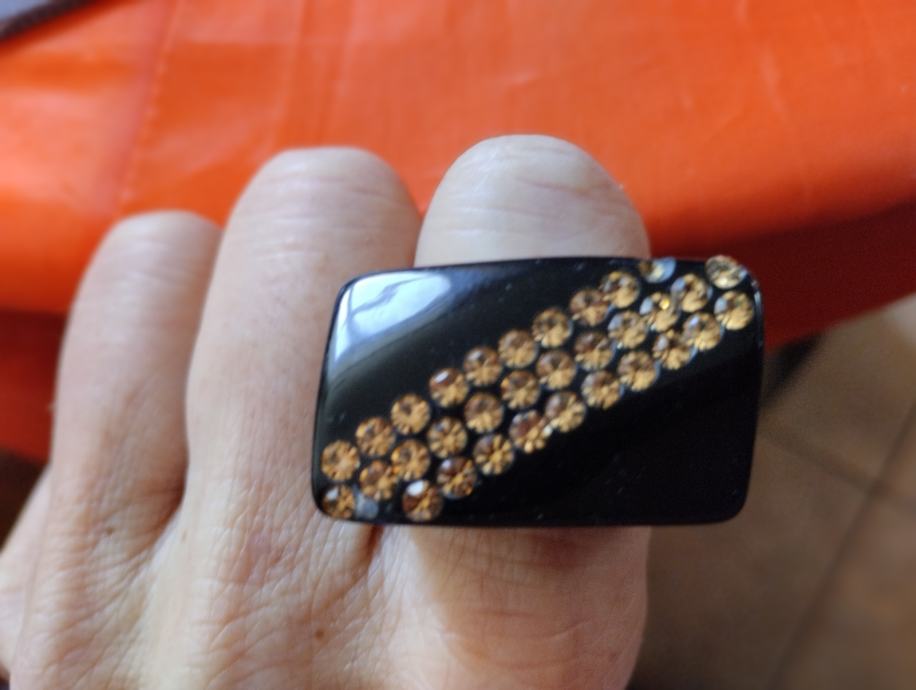 Lijep uočljiv, crno srebrni podebčji i lagan prsten, dobro očuvan, niti ne korišten. Dogovor ...