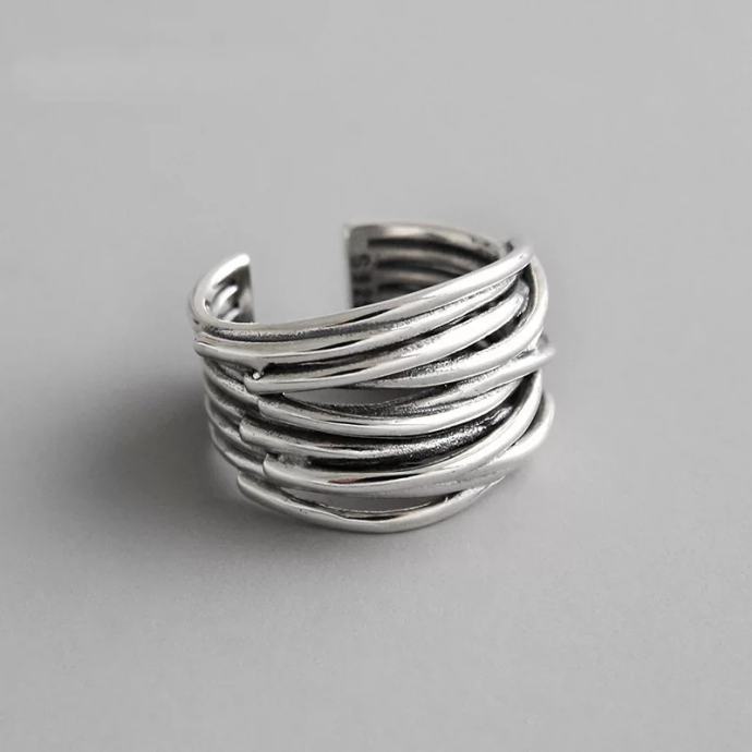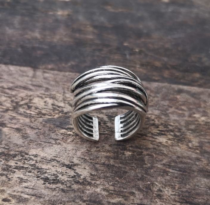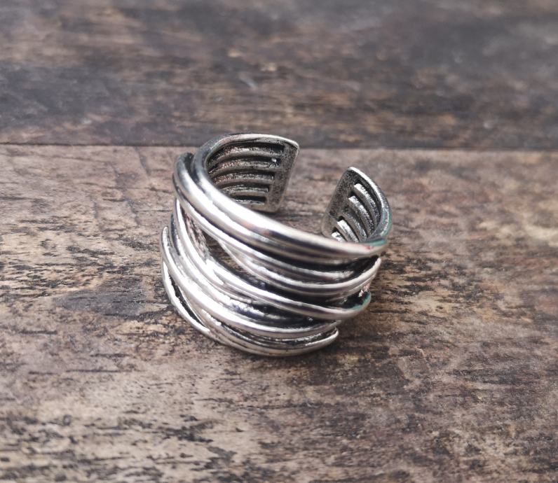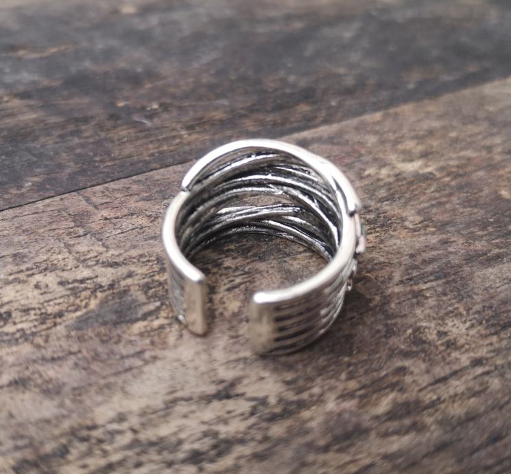 Bogati ženski prsten prilagodiv širini prsta, do maksimalnog unutarnjeg promjera 1,8 cm.