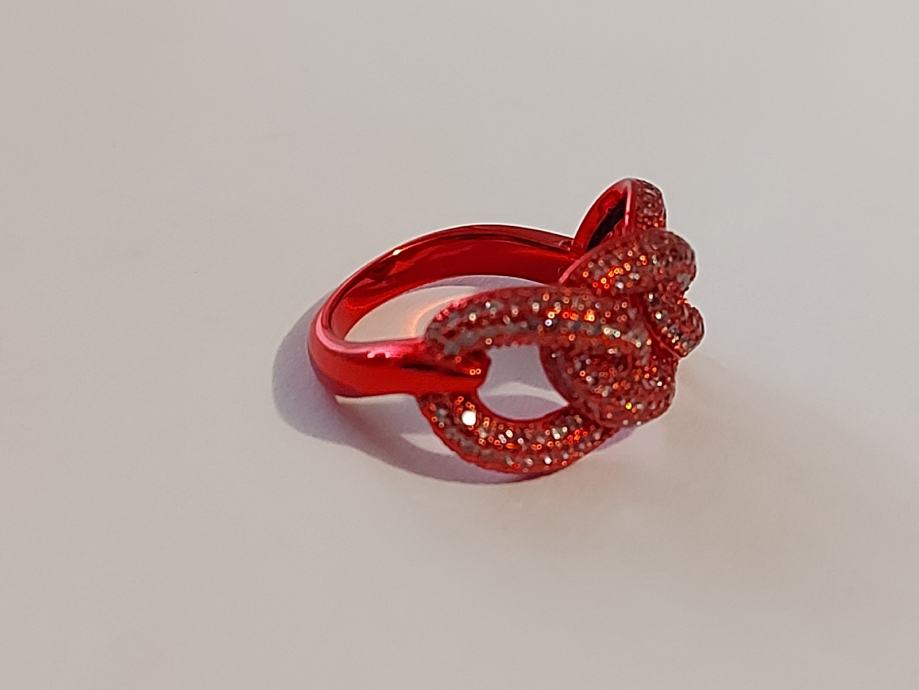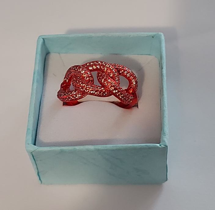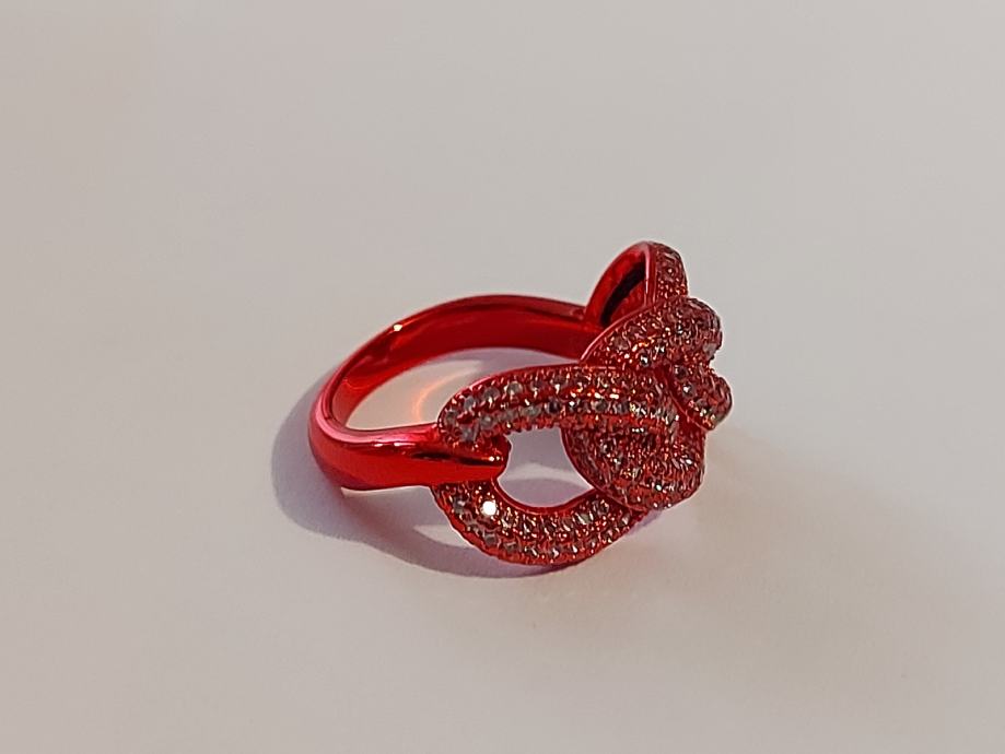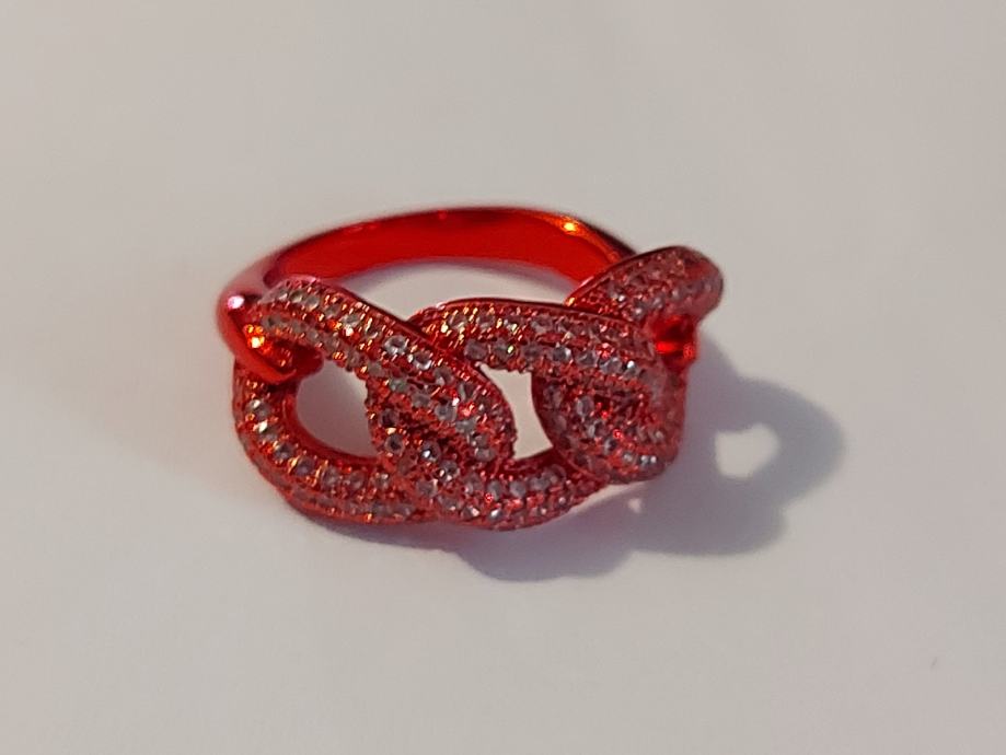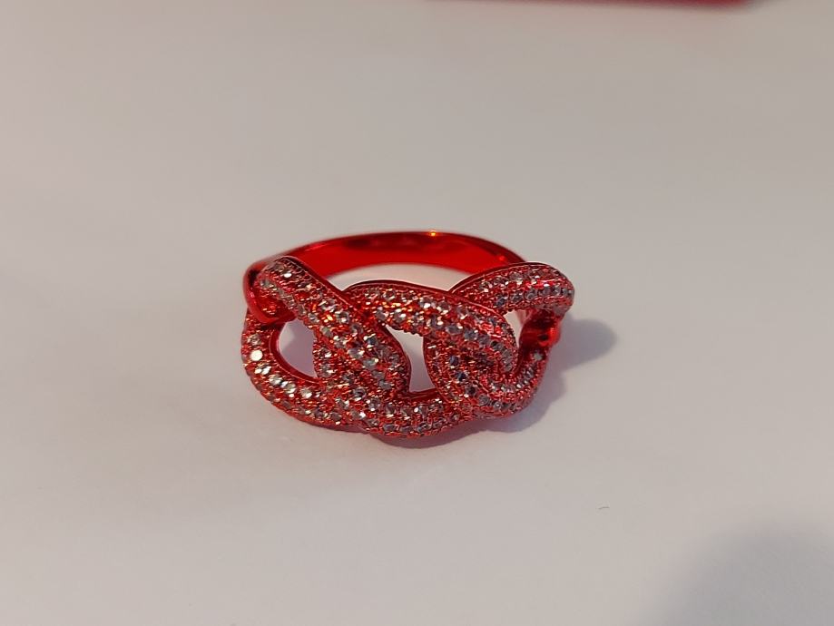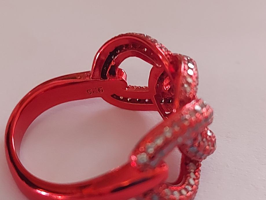 Pravo srebro 925,rodinirano crvenim,cirkoni u srebru. Velicina 17,5mm unutarnji promjer prstena.novo