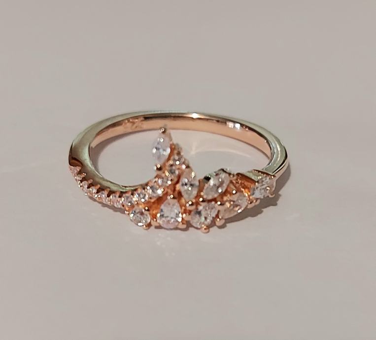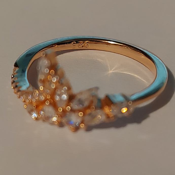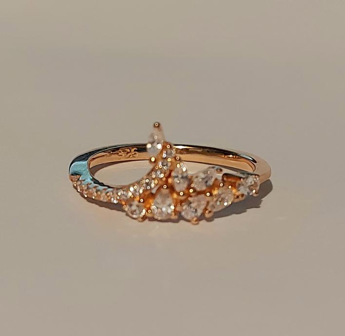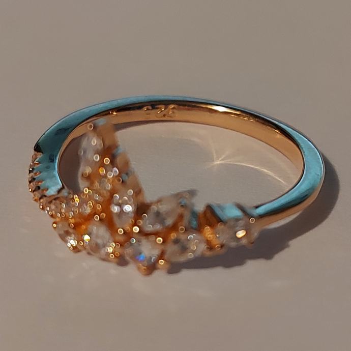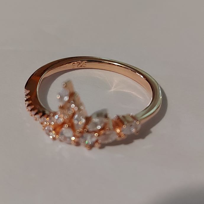 Pravo srebro 925,žig. Pozlata 14 kt na srebru, cirkoni. veličina 17 mm unutarnji promjer prstena. novi