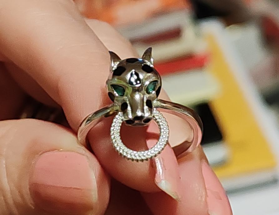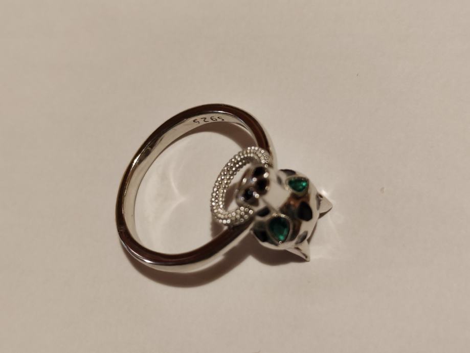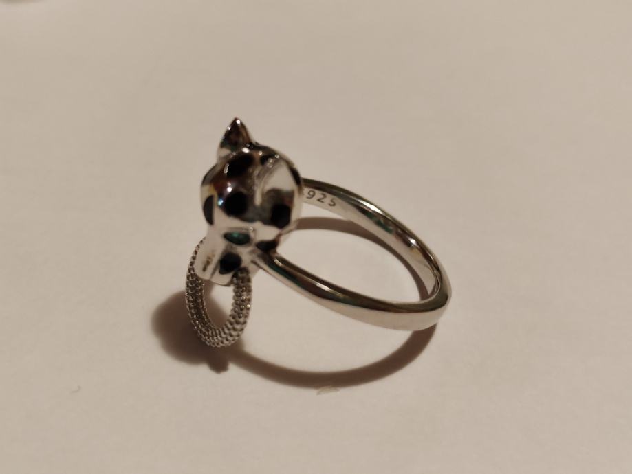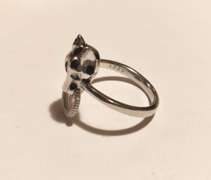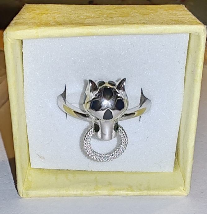 Srebro 925 žig. Gepard. Kolut ukrasni je pomičan. Veličina 8 ili 18mm unutarnji promjer prstena. Novo