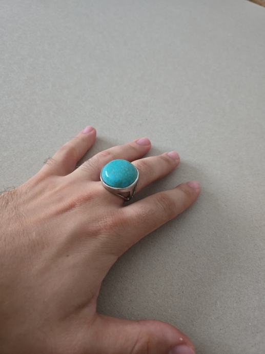 Prodaje se prsten sa slika. Kamen u prstenu je tirkiz, a materijal prstena je nehrđajući čelik. Veličina prstena je US 11.5. Za više info slobodno nazovite: +385 99 453 0004 ili me kontaktirajte porukom (WhatsApp, Viber, Telegram, SMS...)