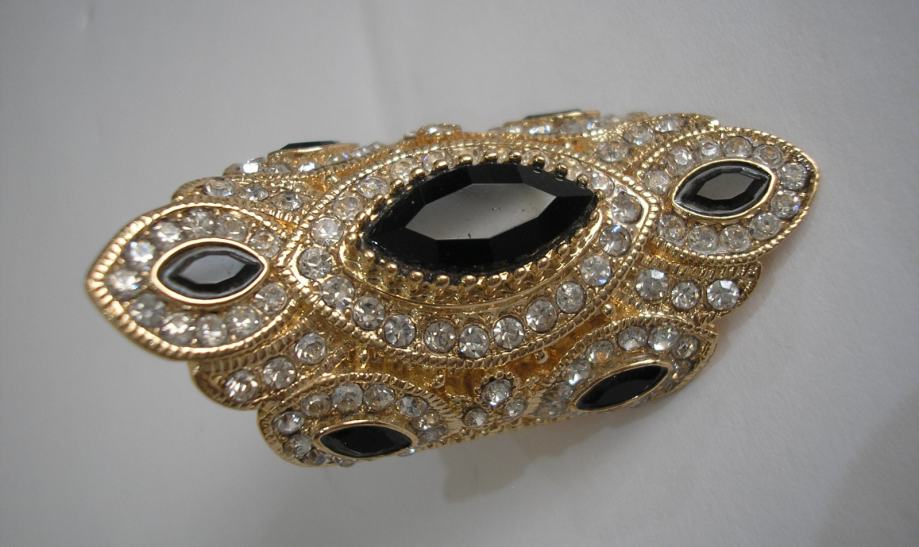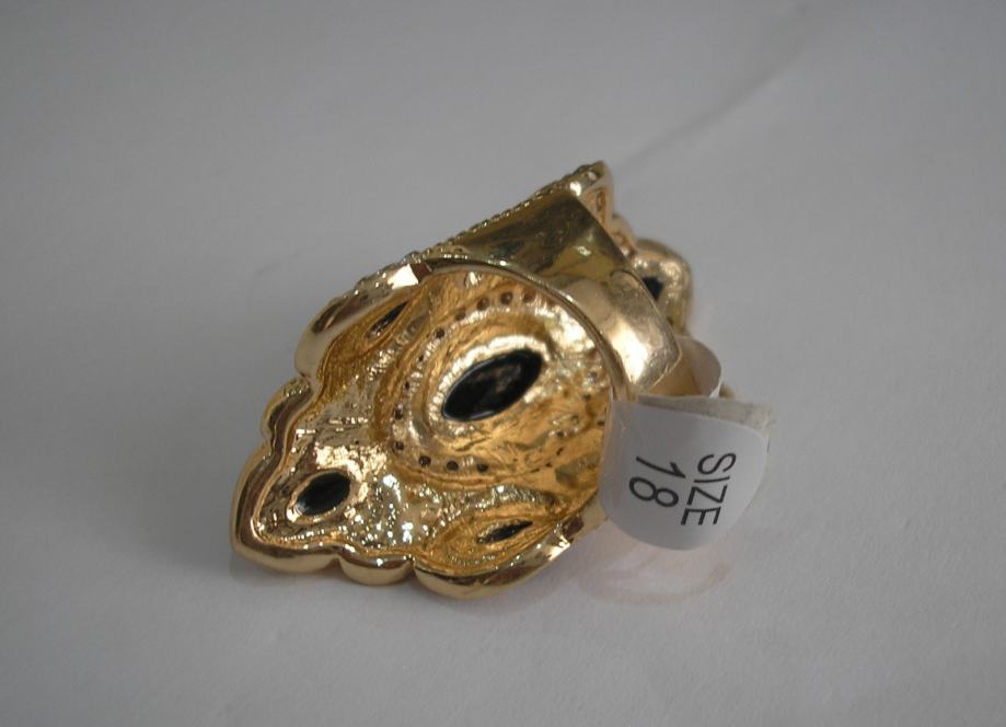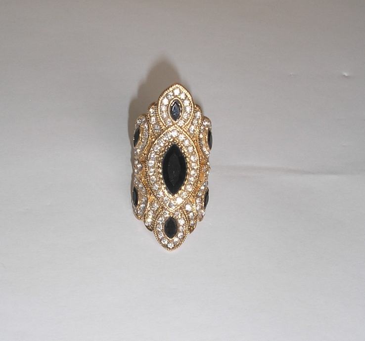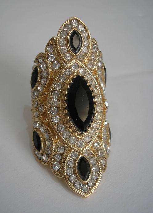 Predivan kraljevski :-) bogati prsten zlatne boje ,crne i bijele kristale