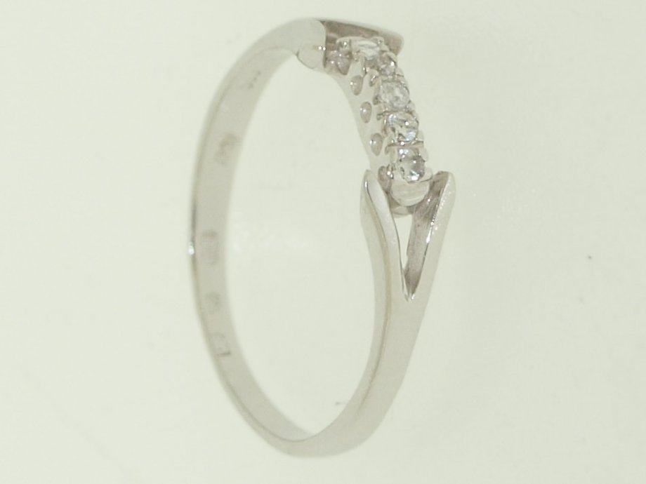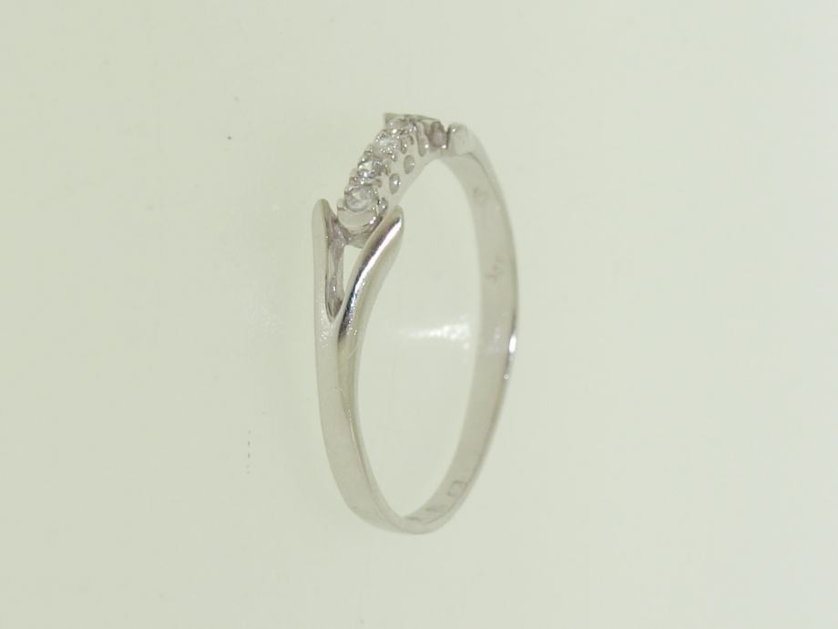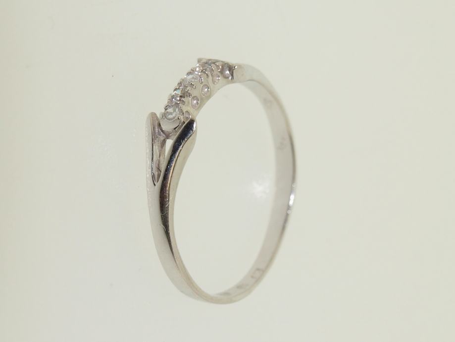 Zlatni prsten, ženski, bijelo zlato 14K, štambilj 585, bijeli cirkonići.