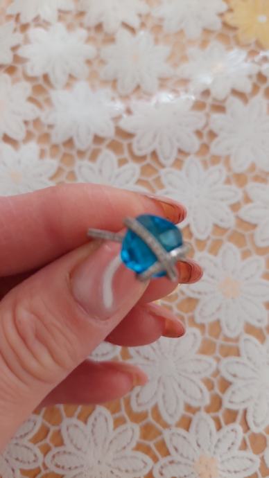 Kratko nošen predivni srebreni prsten sa plavim kamenom i cirkončićima,postao mi malen.Opseg je 2cm.Za uske prste je.