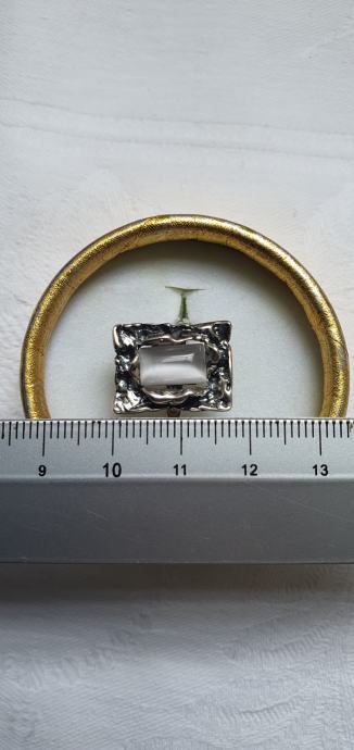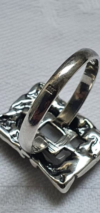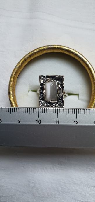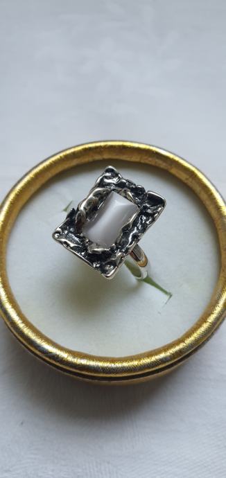 Krasan veliki srebrni prsten ukrašen mjesečevim kamenom krasnog presijavanja ručni dizajnerski rad srebro 925