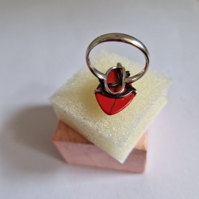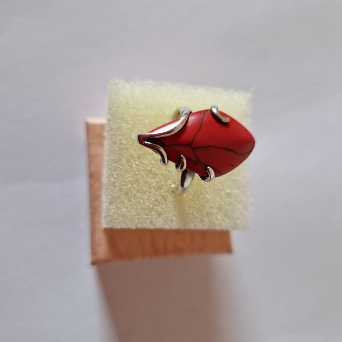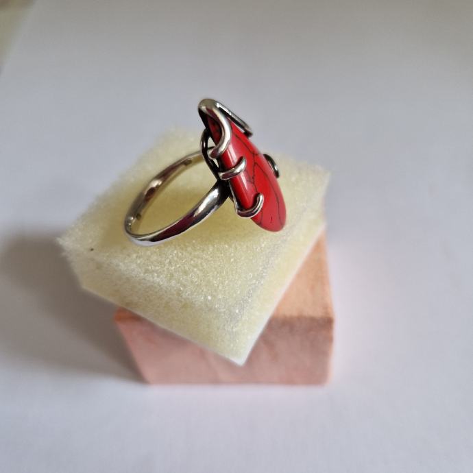Prsten je od crvenog koralja i srebra finoće 925 sa žigom.Veličina prstena je 17mm(7).Veličina glave ,dužina 2.5cm,u najširem dijelu je širok 1.8cm.Prsten je malo korišten ,te je kao nov.