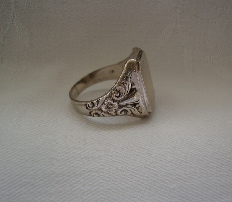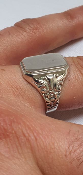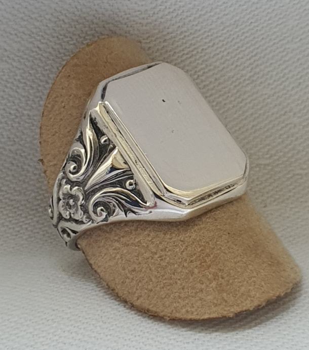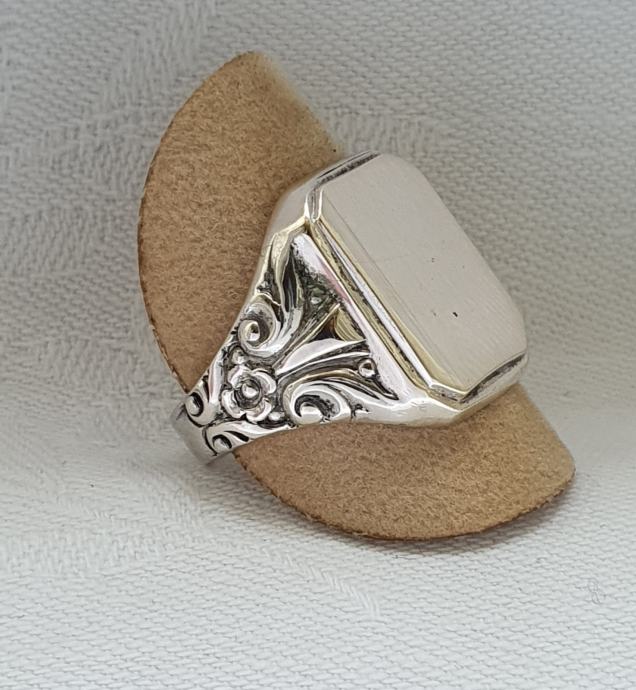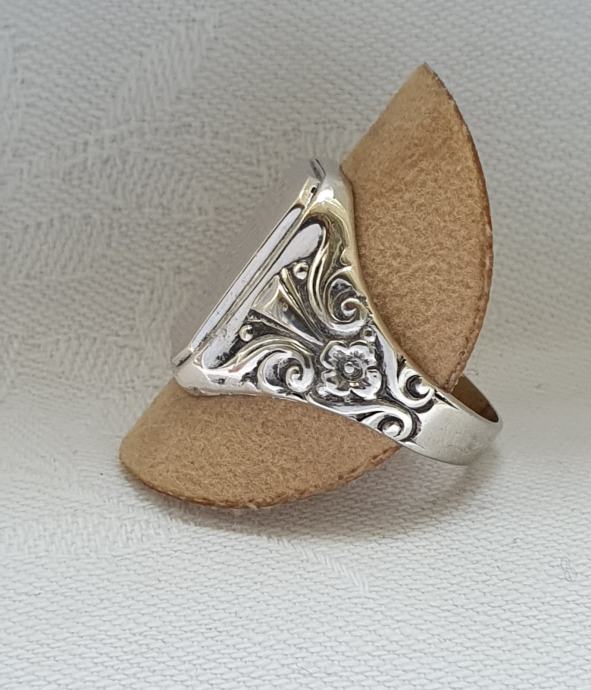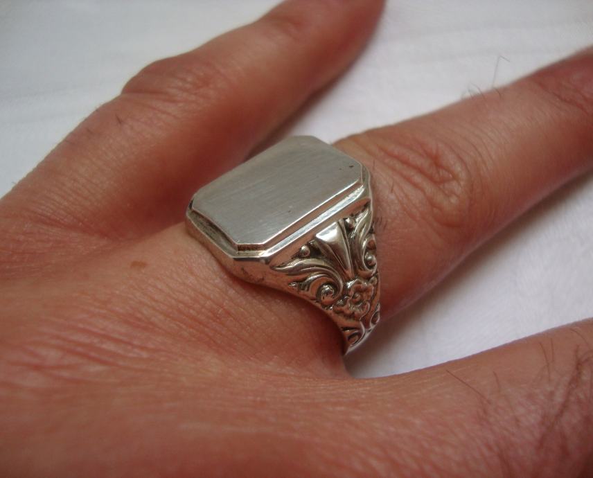 Krasan Ar deko veliki muški pečatanjak rucno kovano ukrasen floralnim uzorkom unutarnji promjer 20 mm (2cm)