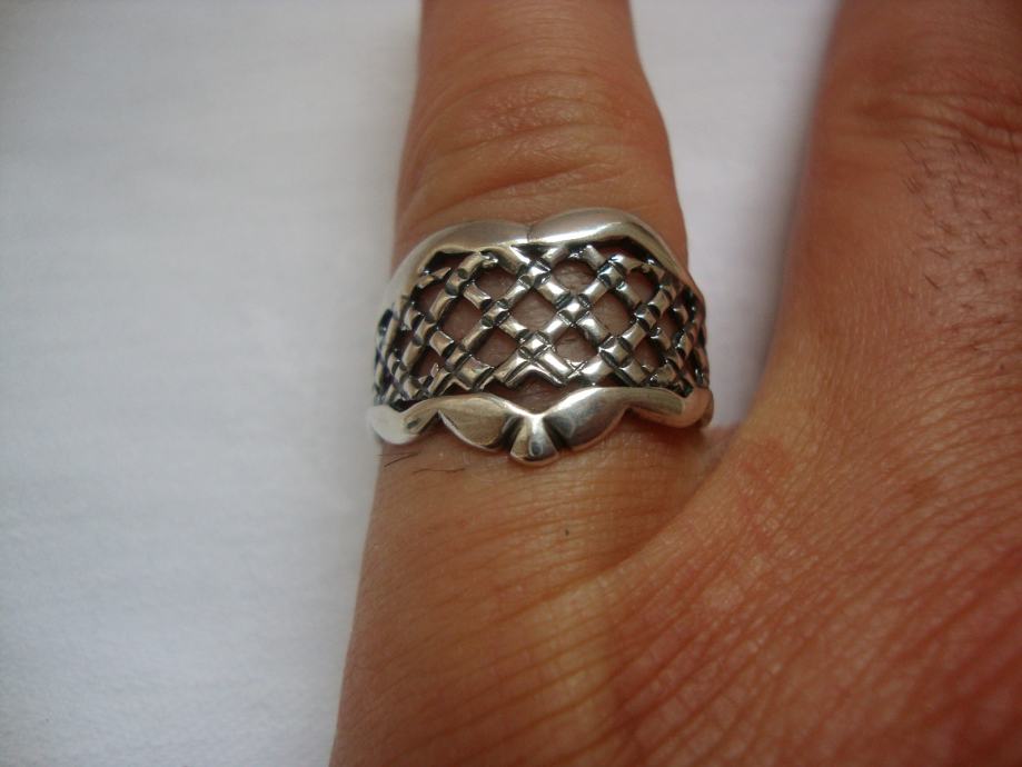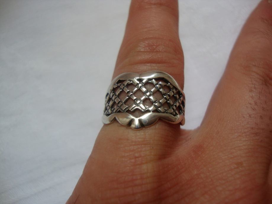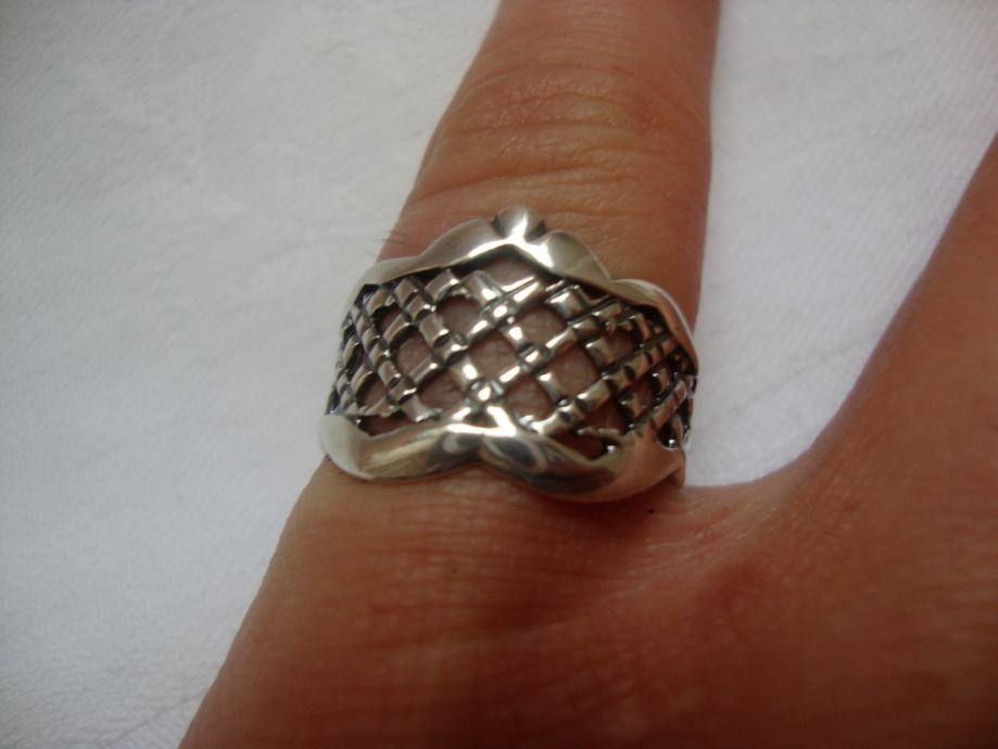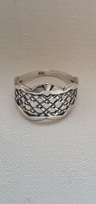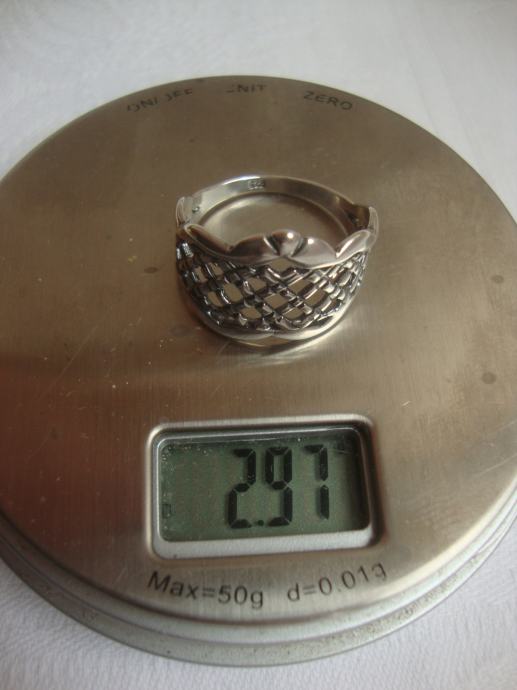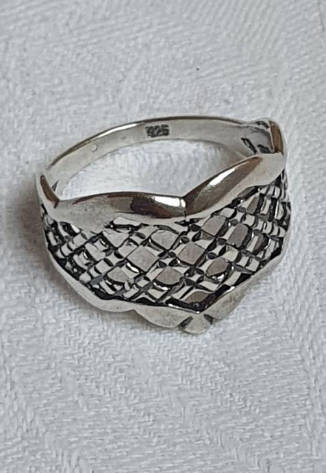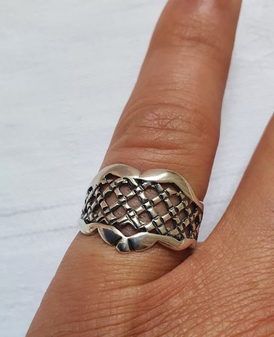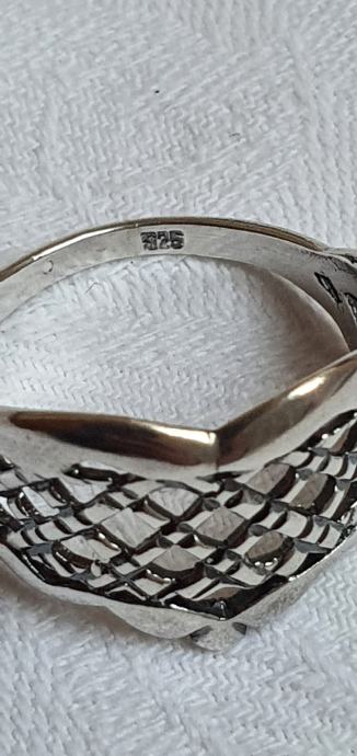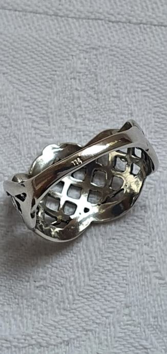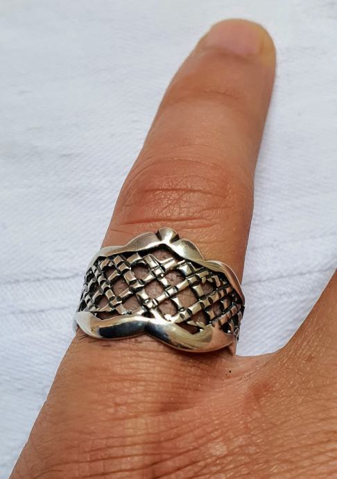 Vrlo lijepi stilski prsten ručni dizajnerski rad srebro 925 ne nošen umutarnji promker 18 mm ukrasni dio kruna 1,3 cm x 2 cm idealno za poklon dva ziga umutar i vanjski na rubu