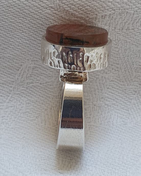 Krasan vintage 1970. srebrni modernistički prsten ukrasen pravim prirodnim karneolom u predivnom stilskom izrađenom okviru