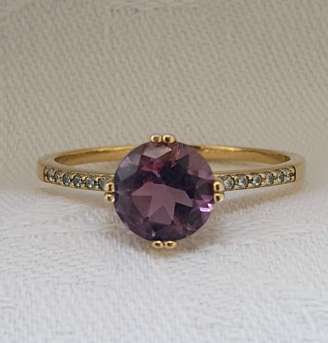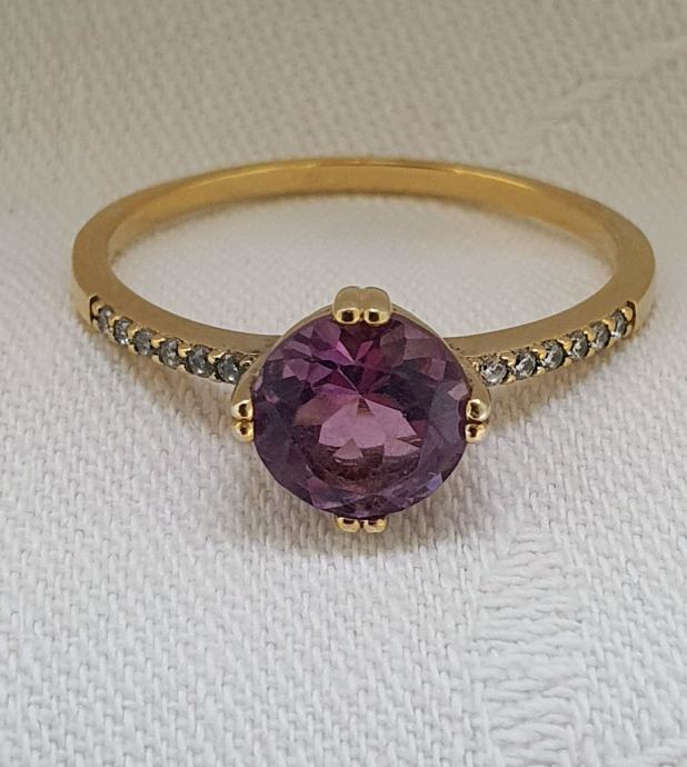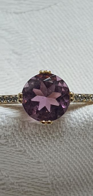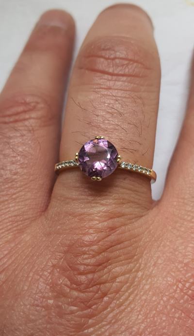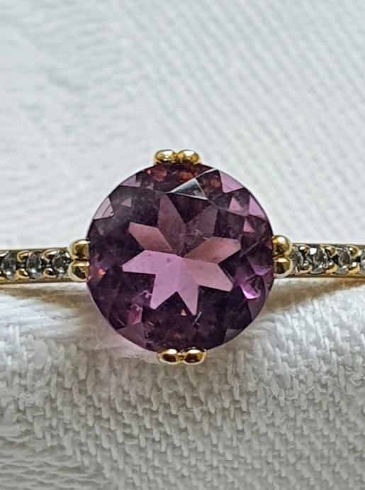 Krasan srebrni prsten ne nosen veceg unutarnjeg promjera 21/22mm ukrasen krasnim ljubicastim kamenom predivnog brusa promjer 8 mm ukiono 9 mm promjera ,prsten je idealan za poklon