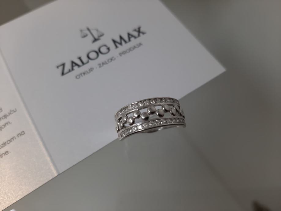 Prsten je atraktivnog dizajna ukrašen cirkonima.