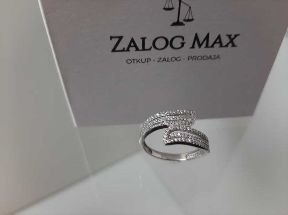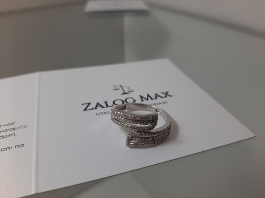 Prsten je atraktivnog dizajna ukrašen cirkonima.