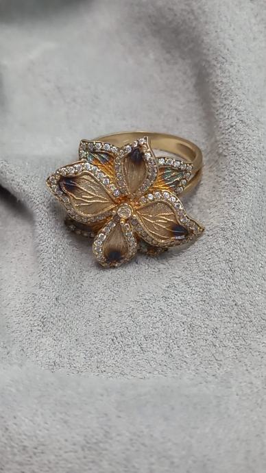 Prsten je atraktivnog, modernog dizajna sa cirkonima.