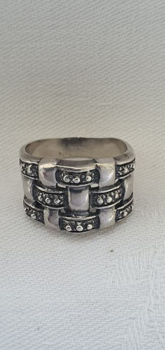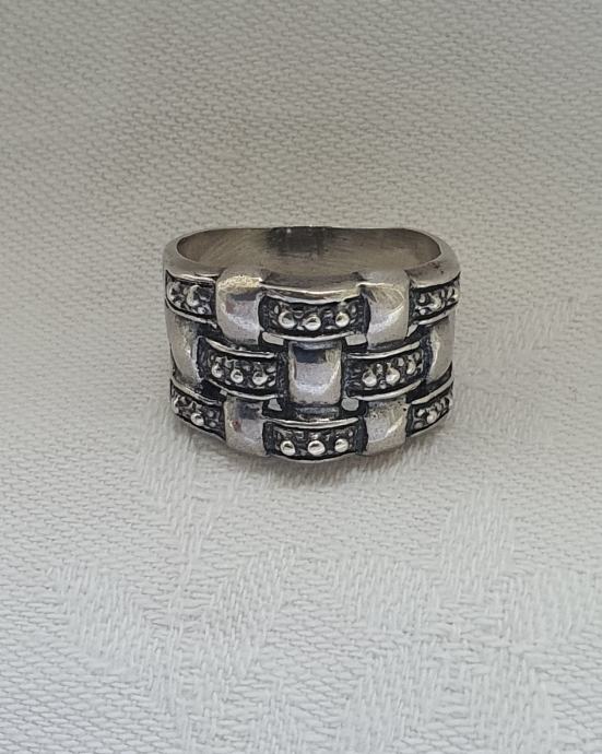 Veliki srebrni prsten ručne izrade u srebru 925 unutarnji promjer 18 mm