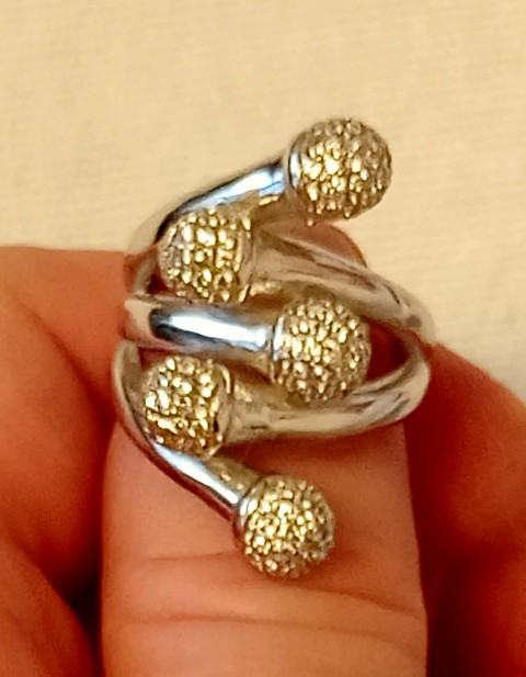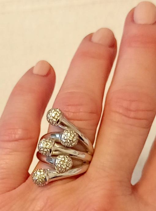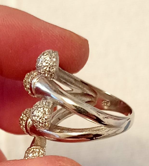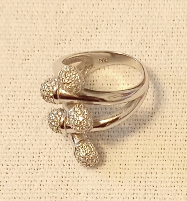 Potpuno novi srebrni prsten s prozirnim cirkonima. Prsten je vrlo bogate izrade.