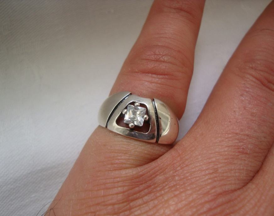 Srebrni dizajnerski prsten ručni rad u srebru 925 ukrasen kamenom