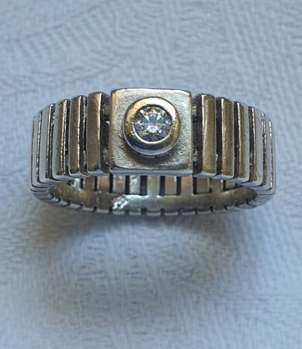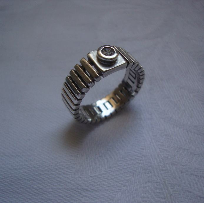 Unutarnji promker 18 mm debljina 7 mm ukrasen lijepim sjajnim fasetiranim kamenom masivan 6.3 grama