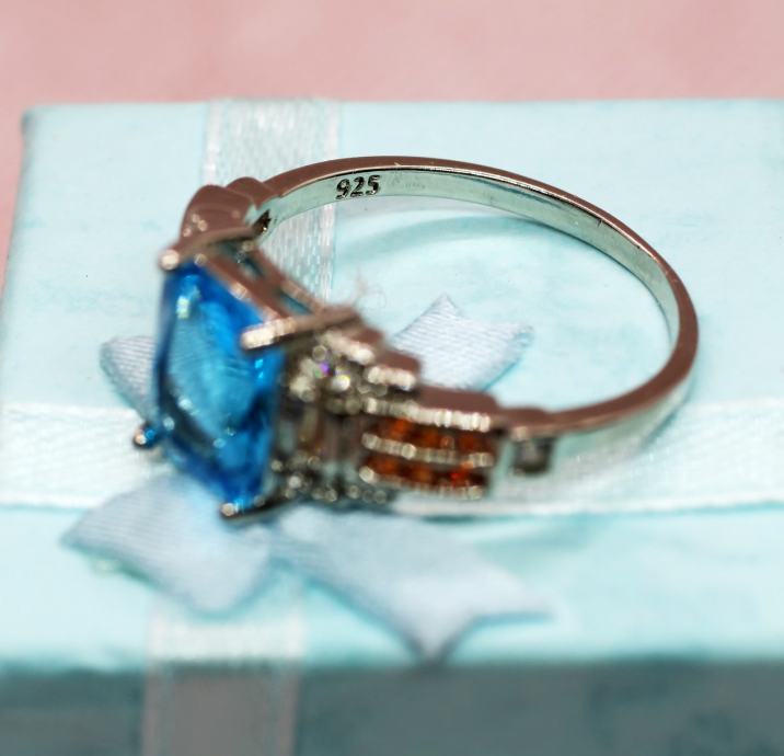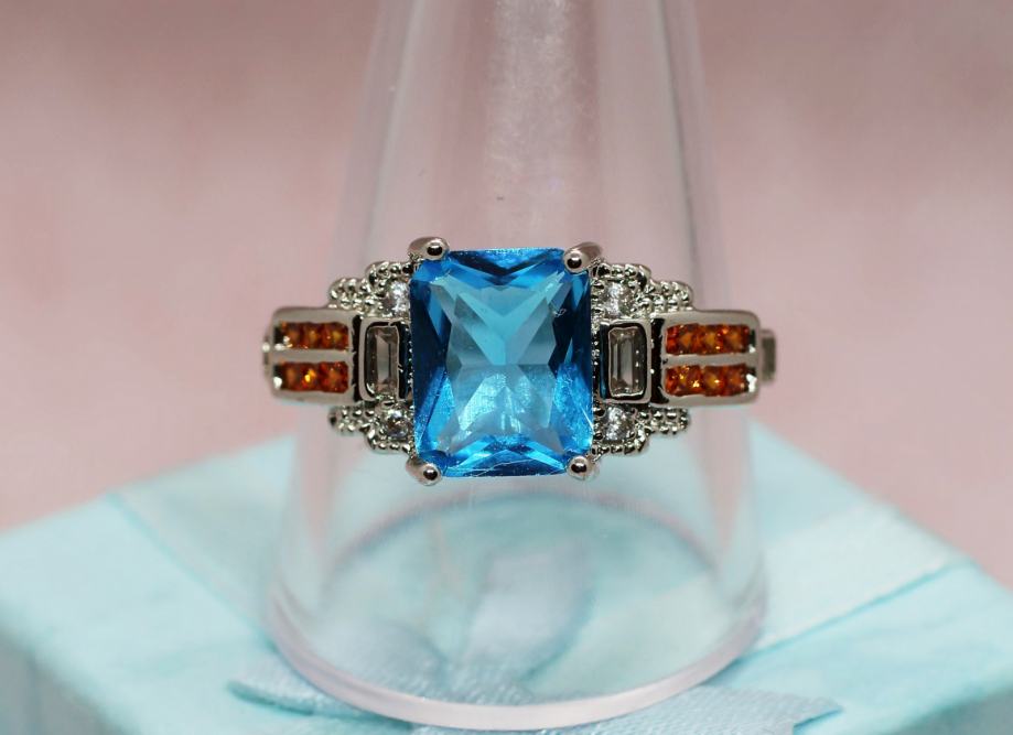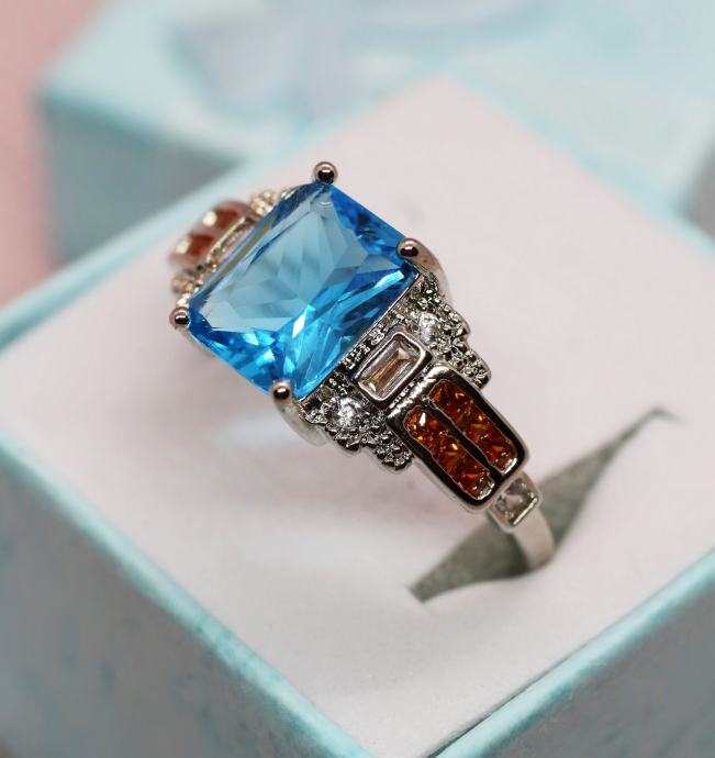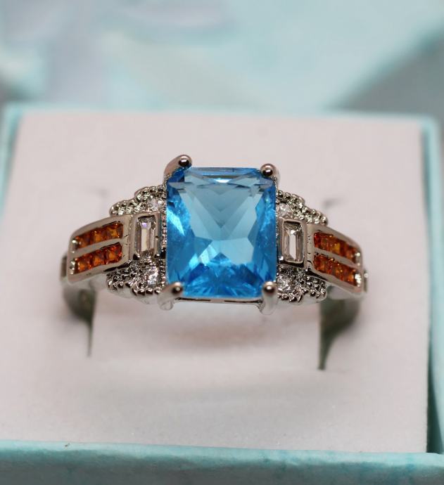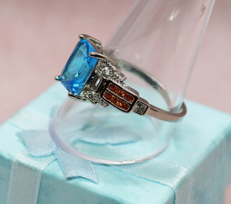 Krasan vrlo moderan i ekskluzivan prsten sa velikim kamenom akvamarina i