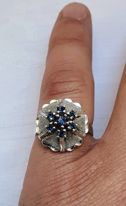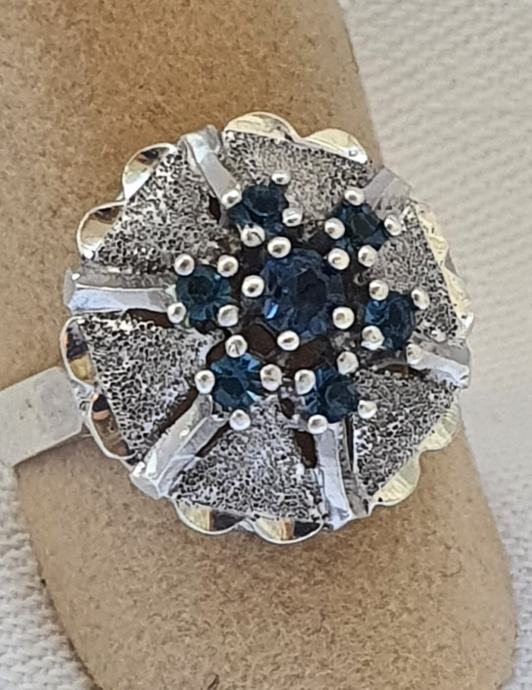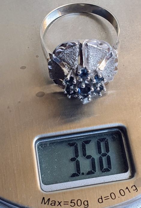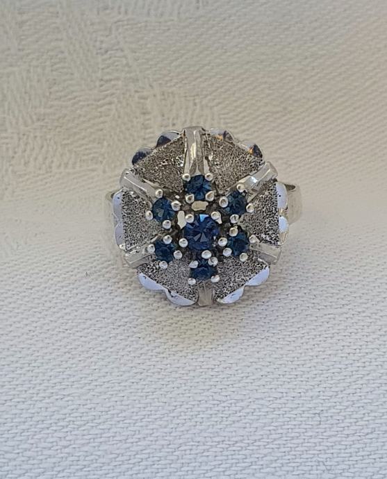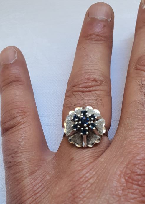 Njemacki art deco stari prsten u savrsenom stanju safir srebro 835 unutarnji promjer 18 mm