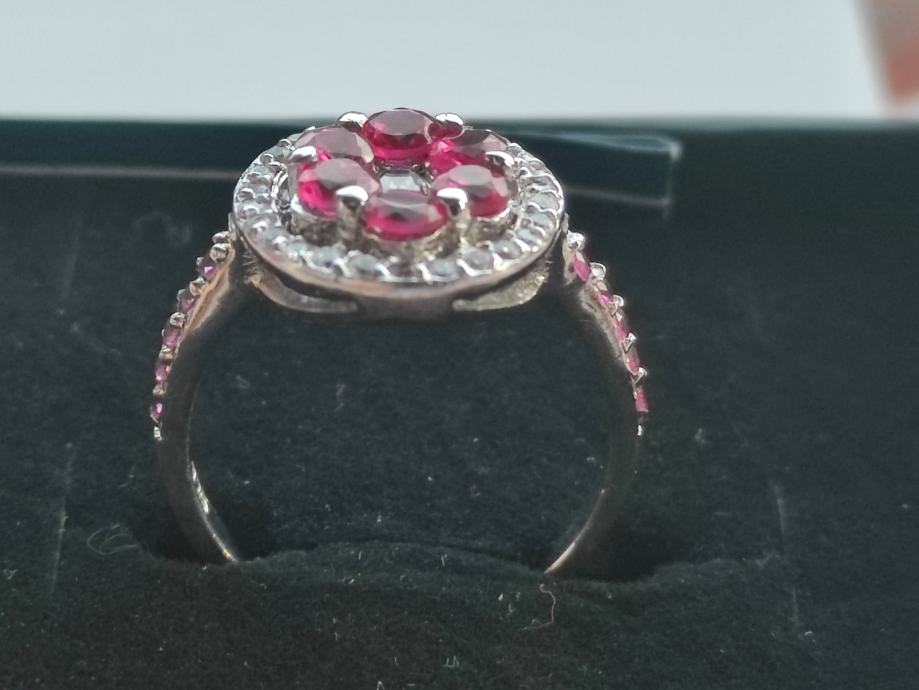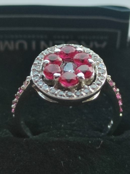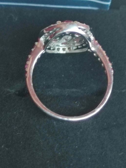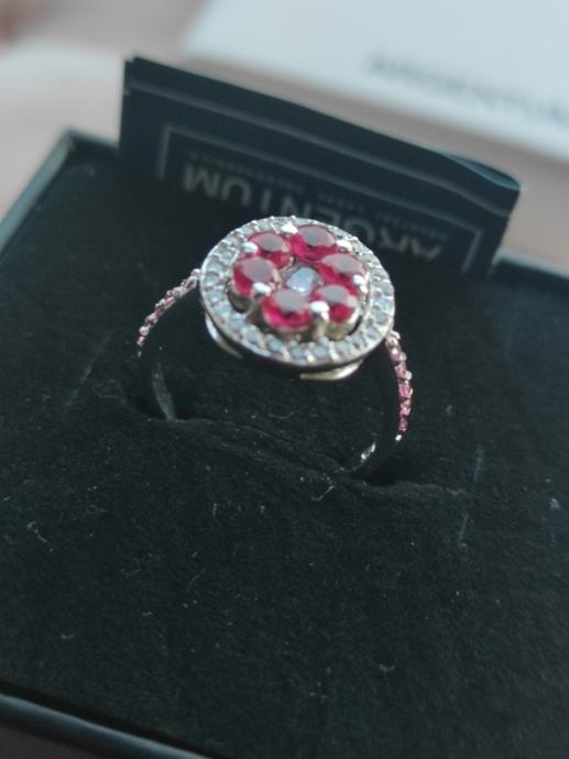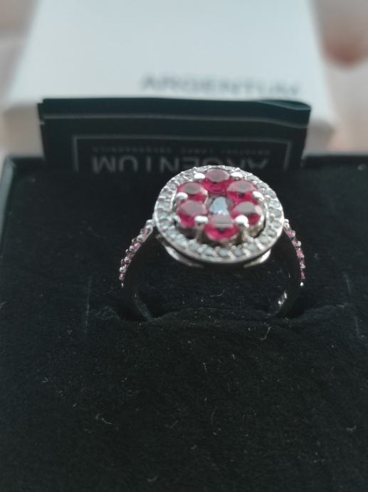 Novi srebrni (Ag925) prsten sa ružičastim cirkonima, kupljen u srebrnarnici Argentum prošle godine. Nije nošen. Veličina prstena tj.promjer je 18 mm.
