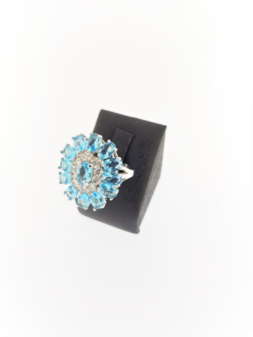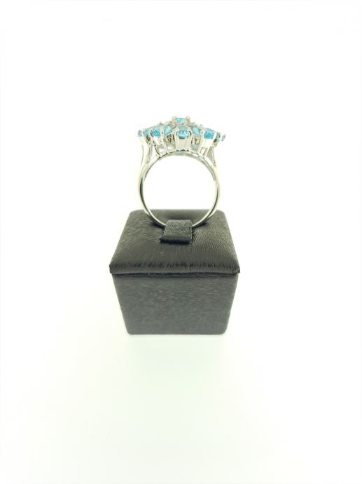 Prodaje se srebrni prsten sa cirkonima i plavim kamenima 8,02g .925