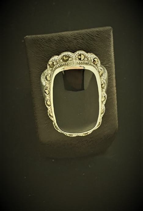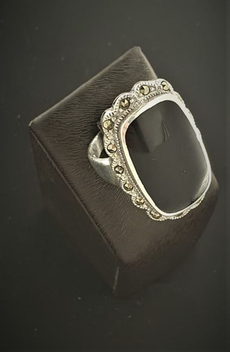 PRODAJEMO SREBRNI PRSTEN SA CRNIM KAMENOM .925 7,80G.