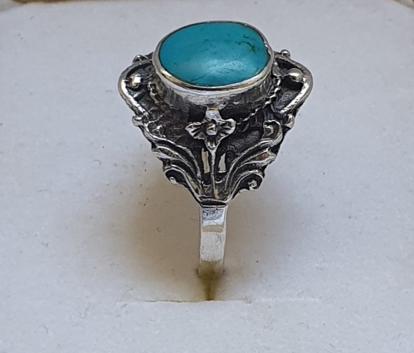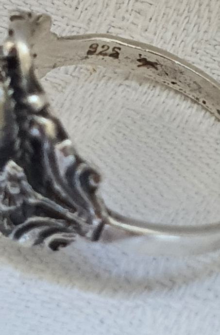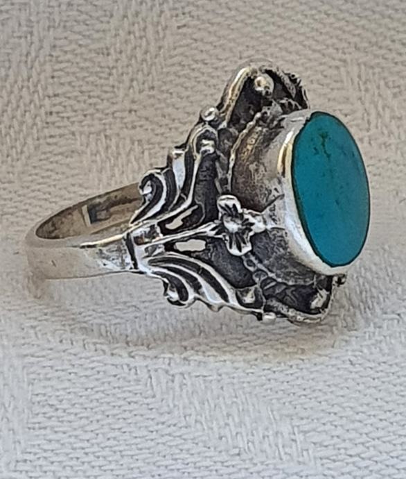 Vintahe art deko szari srebri prsten rucno kovano srebro 925 ukrasen bocno sa cviketicima te krasnim trikiz kamenom ovani ,unutarnji promjer promker 18 m ,ukrasni dio 1,6cm x 1,7cm vrlo poseban i elegantan jako udoman na prstu