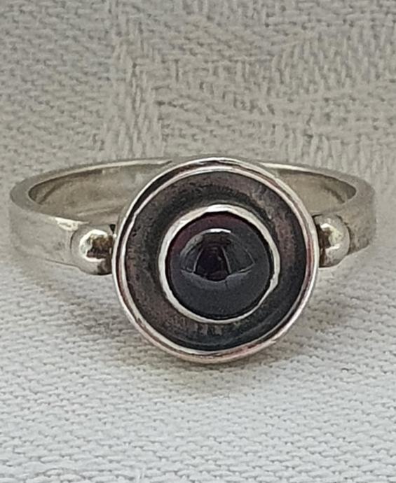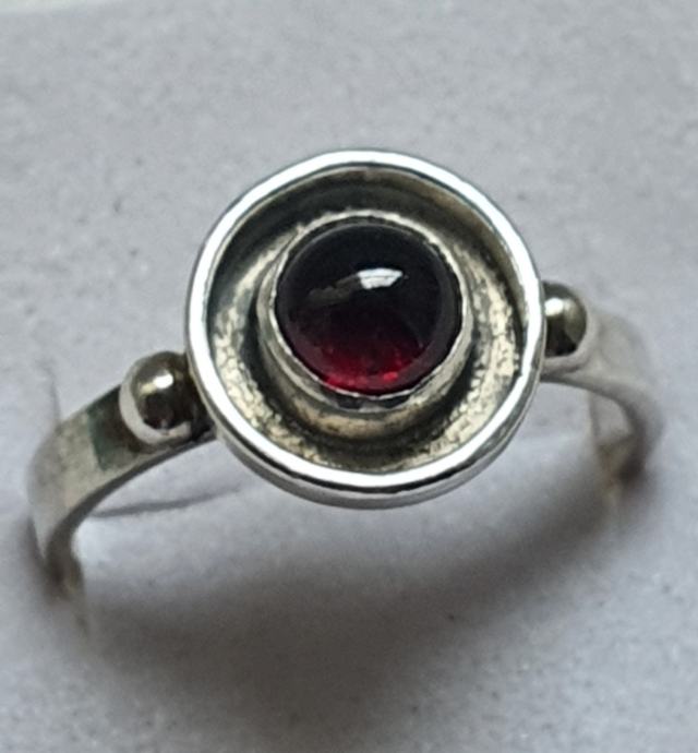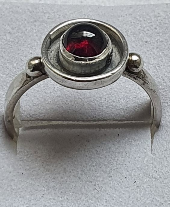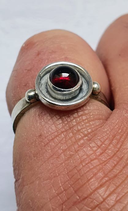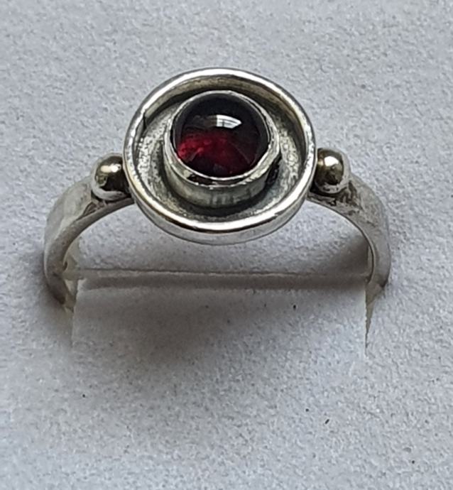 Krasan srebrni dizajnerski prsten ukrasen zaoblkenkm prirodni nihemijskim granatom u srebru 925